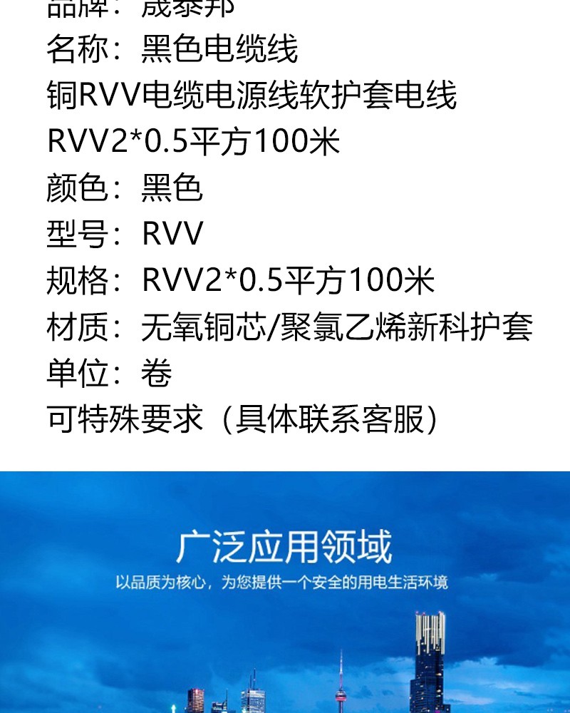 晟泰邦 黑色电缆线 铜RVV电缆电源线软护套电线 RVV2*0.5平方100米 2芯