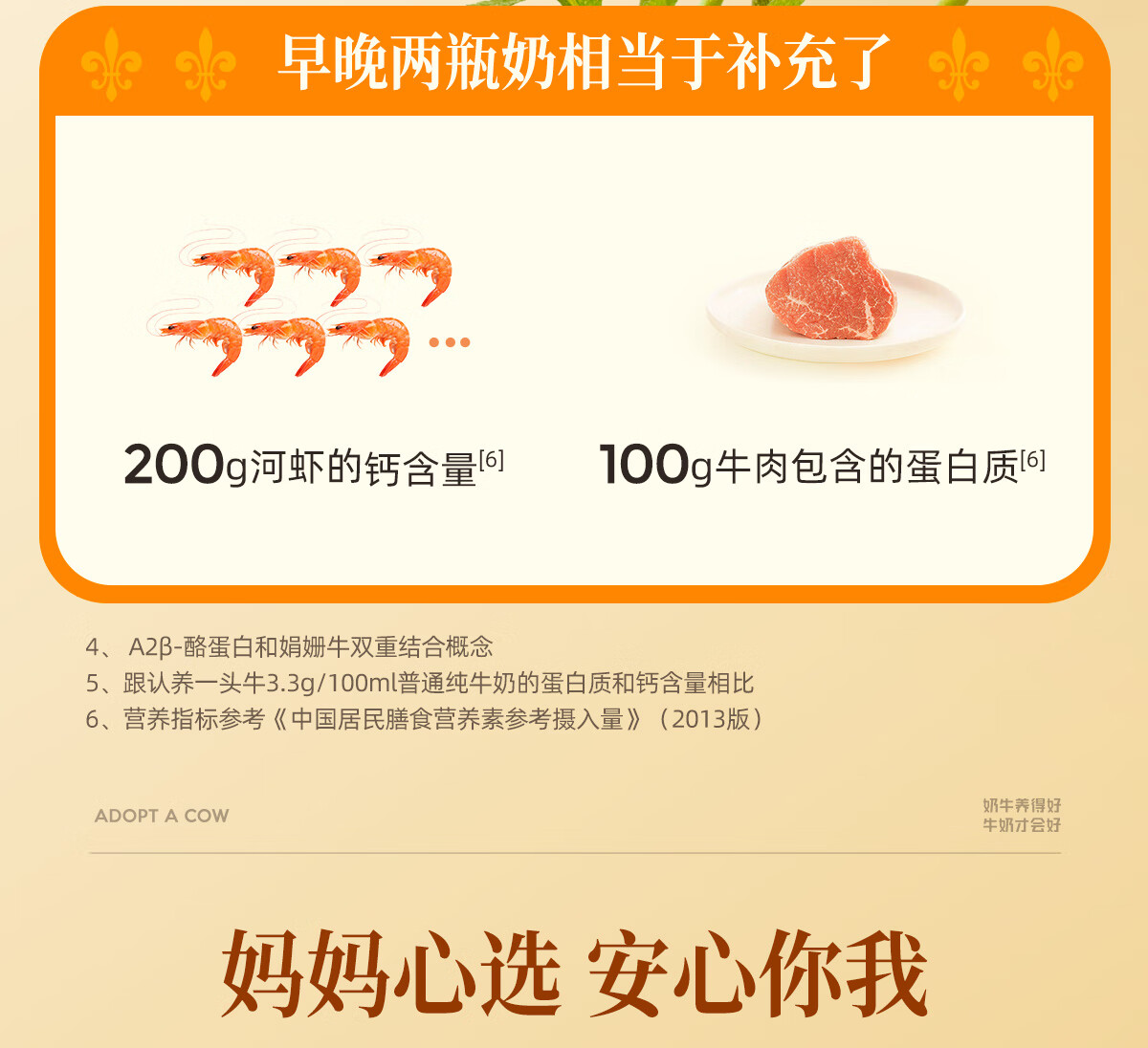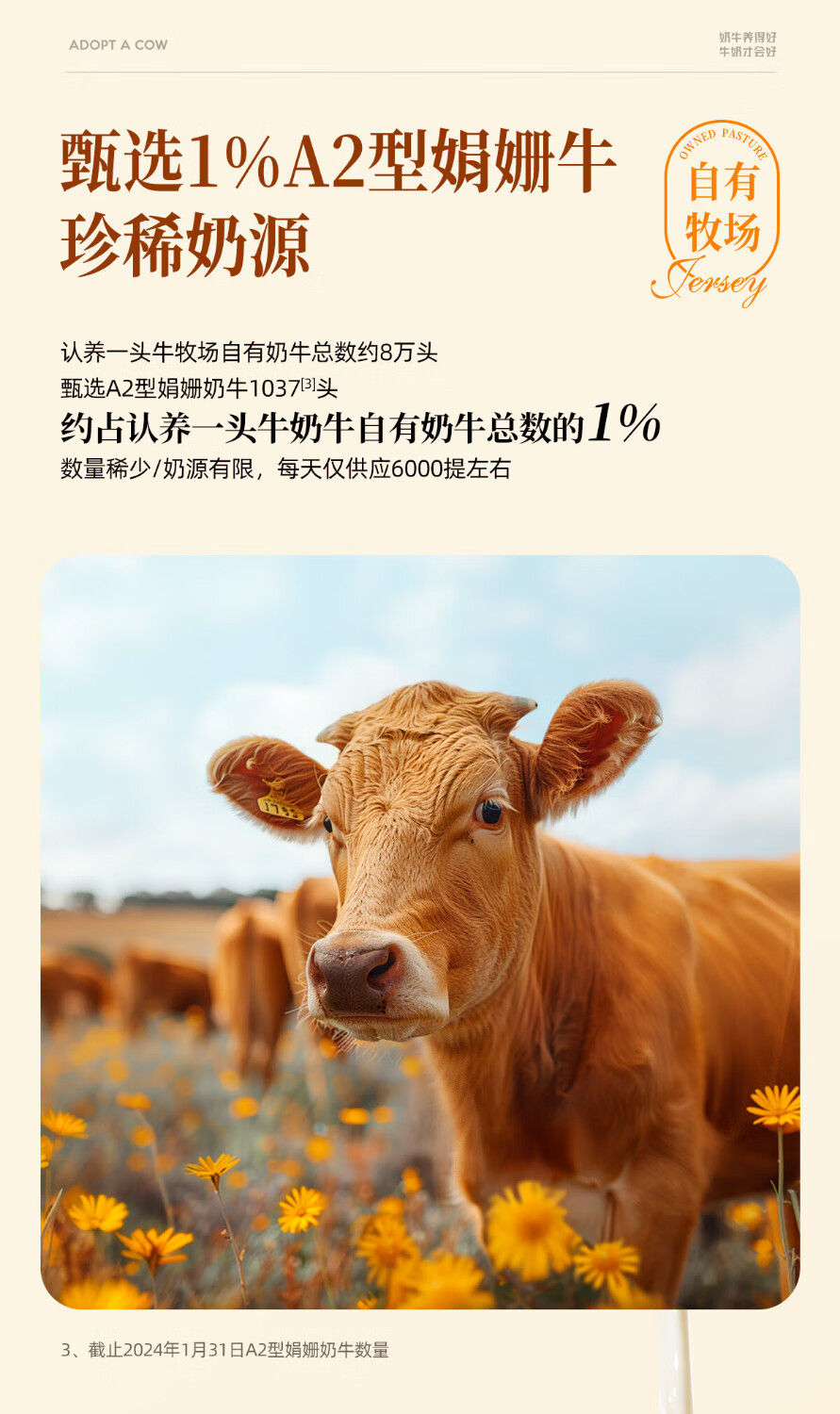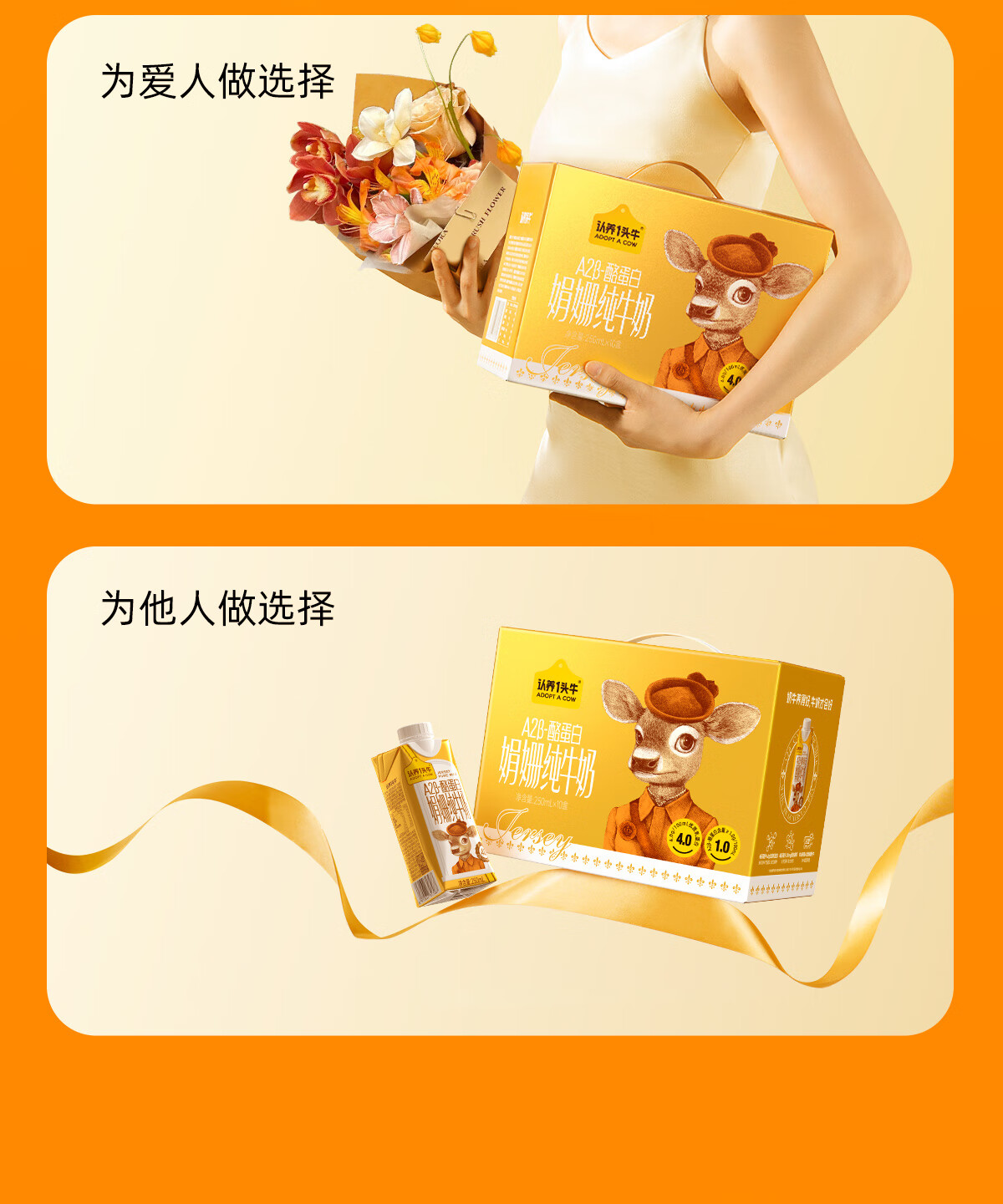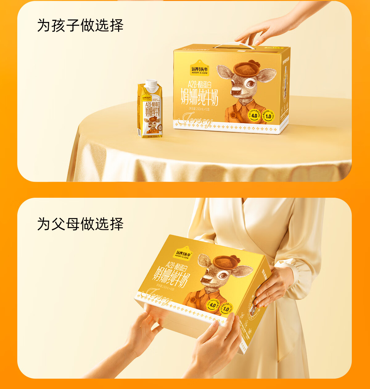 认养一头牛 A2β酪蛋白娟姗4.0g蛋白 250ml纯牛奶小金瓶营养学生奶 250ml*10盒*1箱