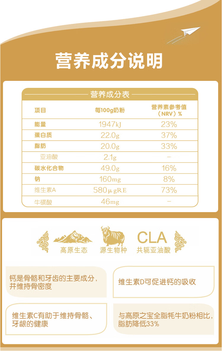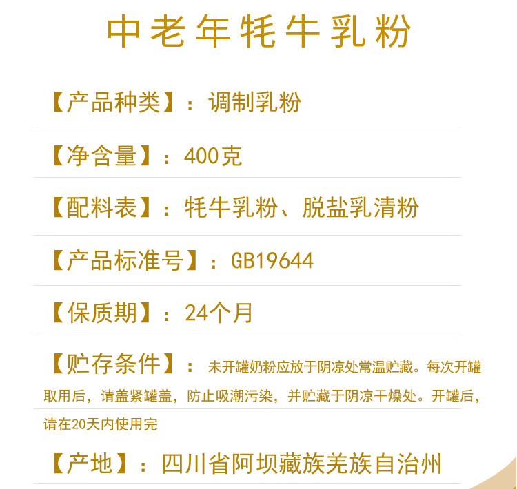 高原之宝 中老年牦牛奶粉成人奶粉400g高钙