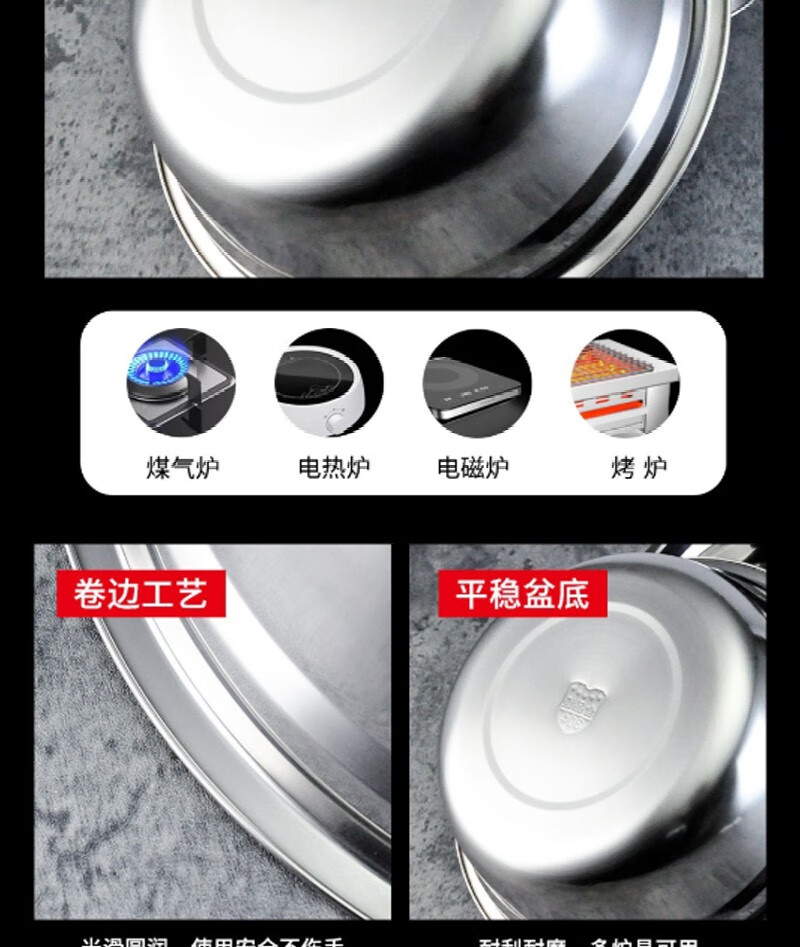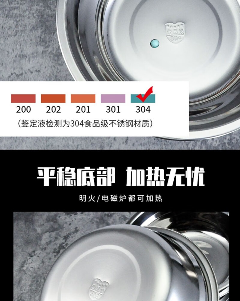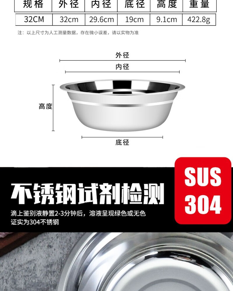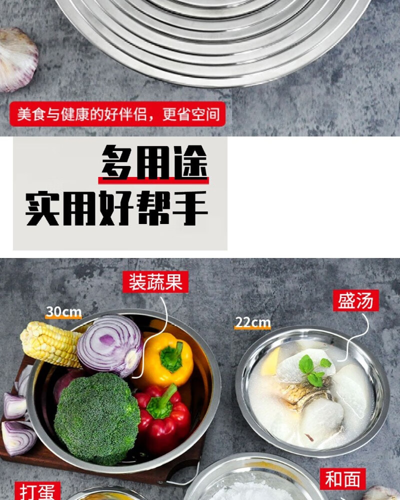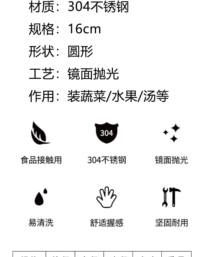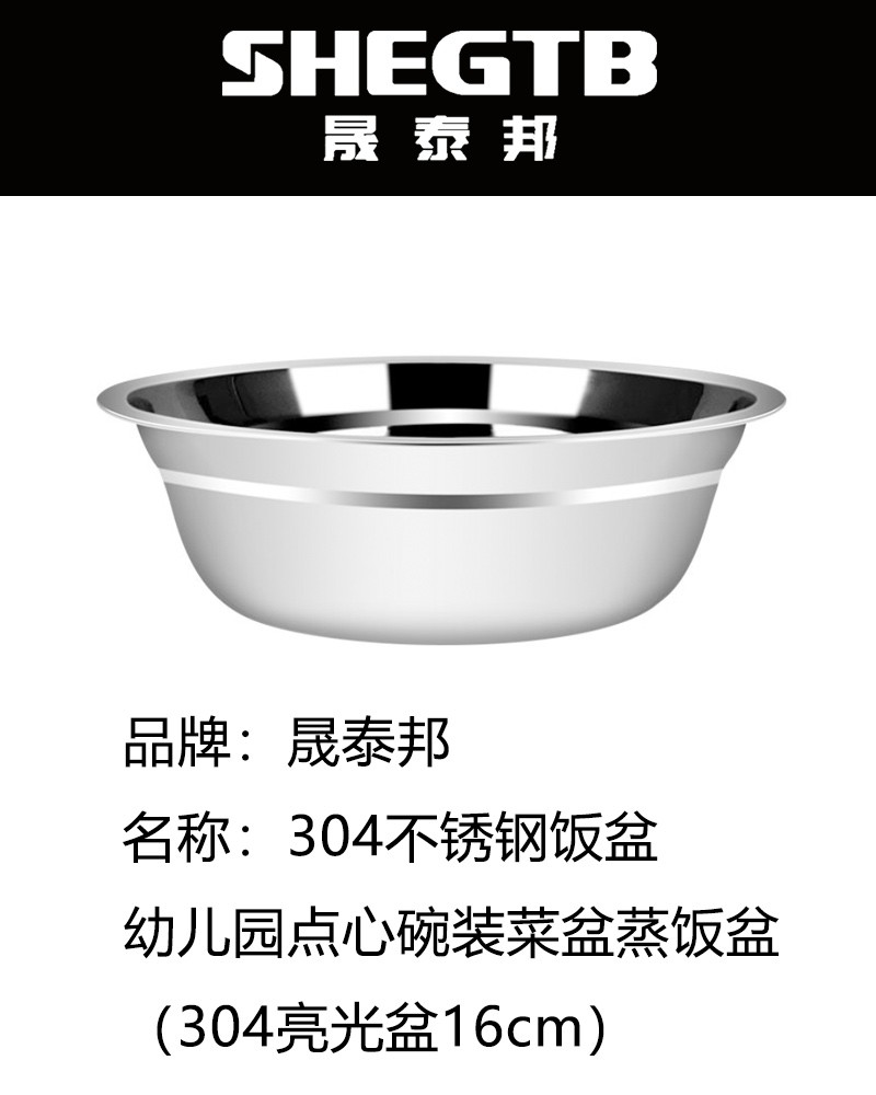 晟泰邦 304不锈钢汤盆饭盆幼儿园点心碗家用装菜盆蒸饭盆(304亮光盆(16cm))1个 10个起订