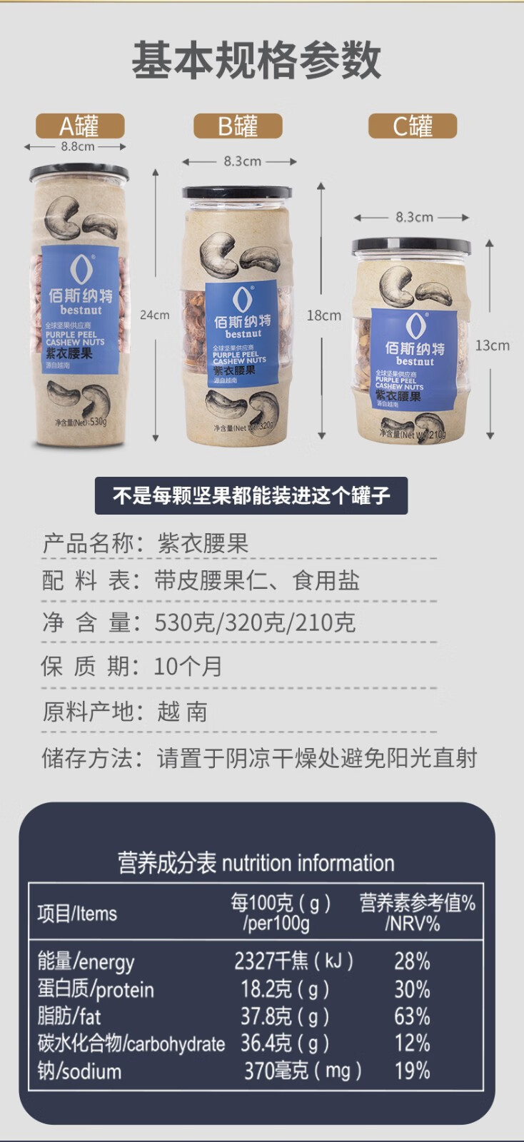 佰斯纳特 紫衣腰果320g