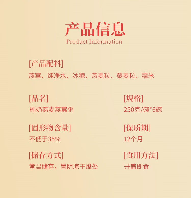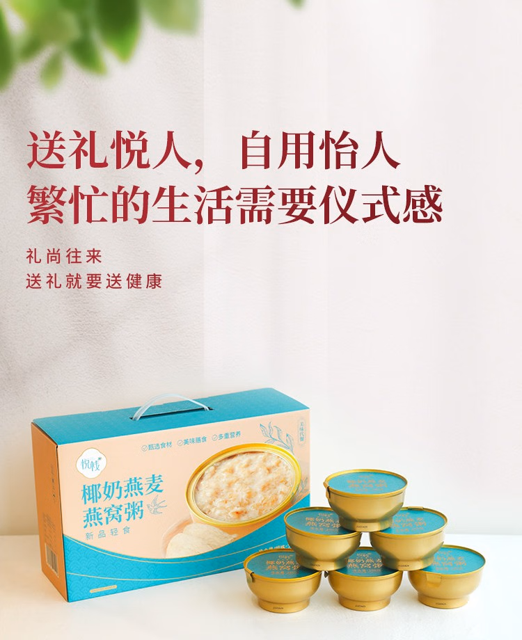 悦栈 椰奶燕麦燕窝粥250g*6碗