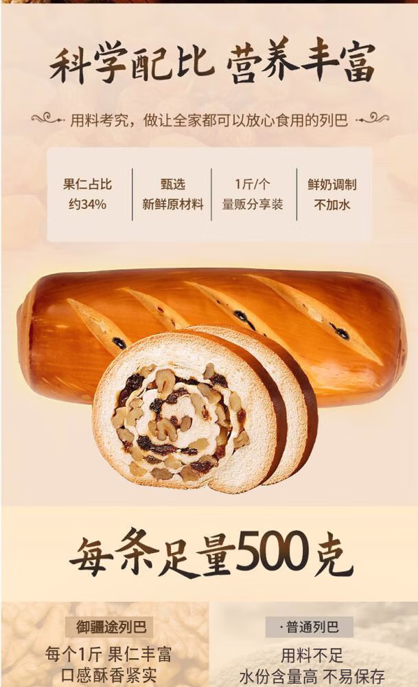 御疆途 新疆大列巴切片坚果味900g