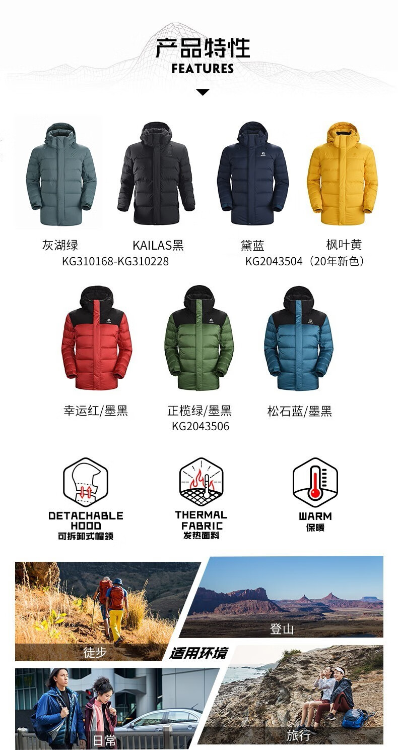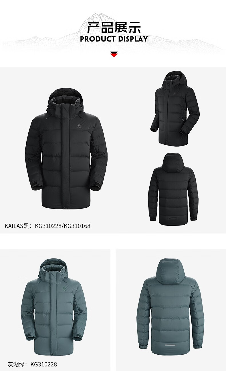 凯乐石加厚羽绒服防寒服男秋冬保暖防水800蓬中长款鹅绒外套KG310228 KAILAS黑(L-2XL码可选 下单备注)