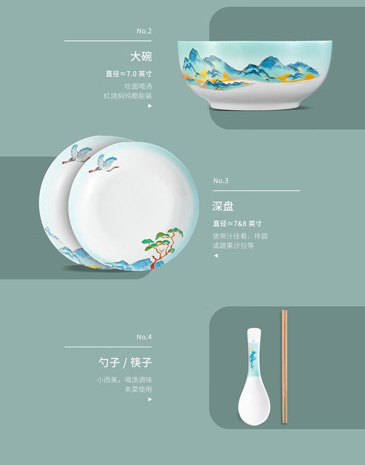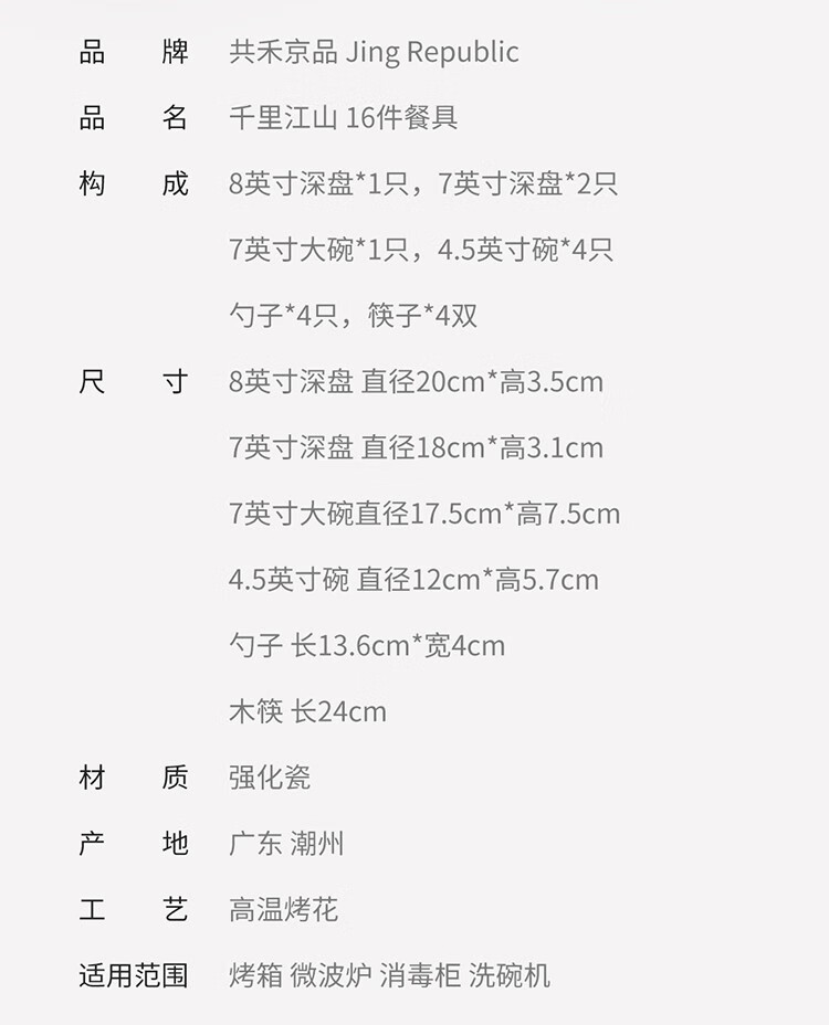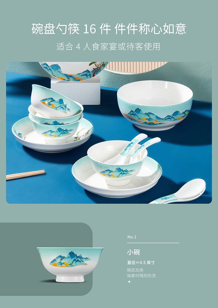 共禾京品 千里江山餐具16件套