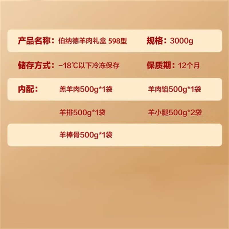 伯纳德 羊肉礼盒598型3000g(顺丰冷链)