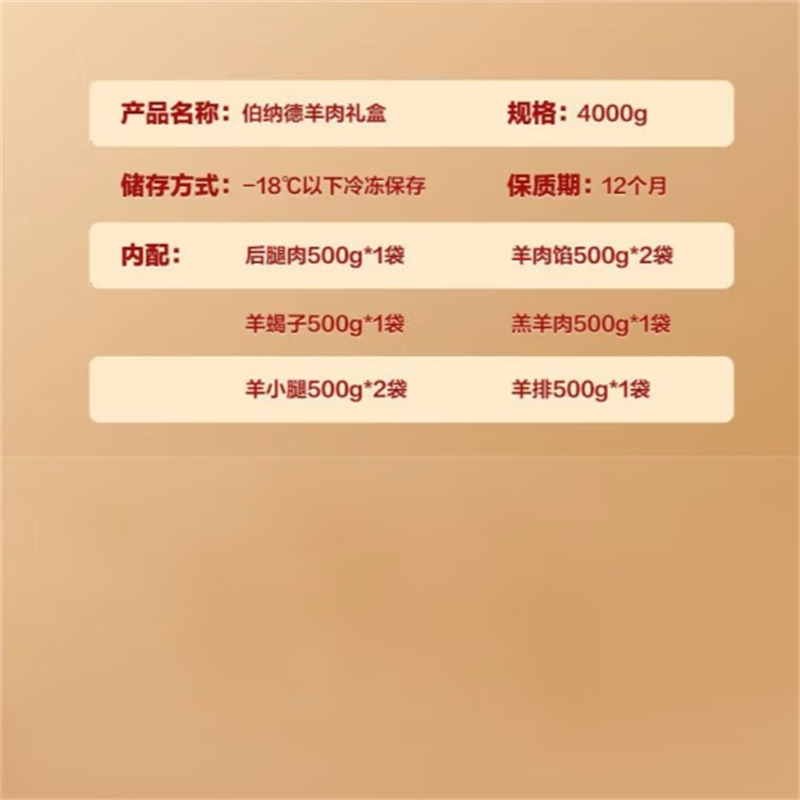 伯纳德 羊肉礼盒788型4000g(顺丰冷链)