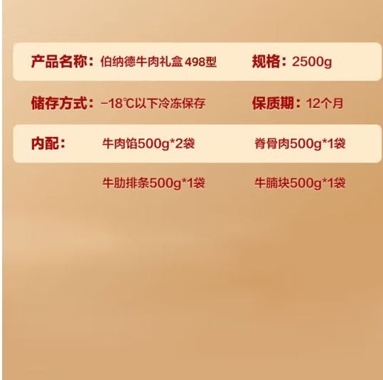 伯纳德 牛肉礼盒498型2500g(顺丰冷链)