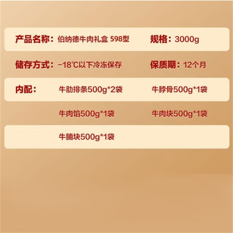 伯纳德 牛肉礼盒598型3000g(顺丰冷链)