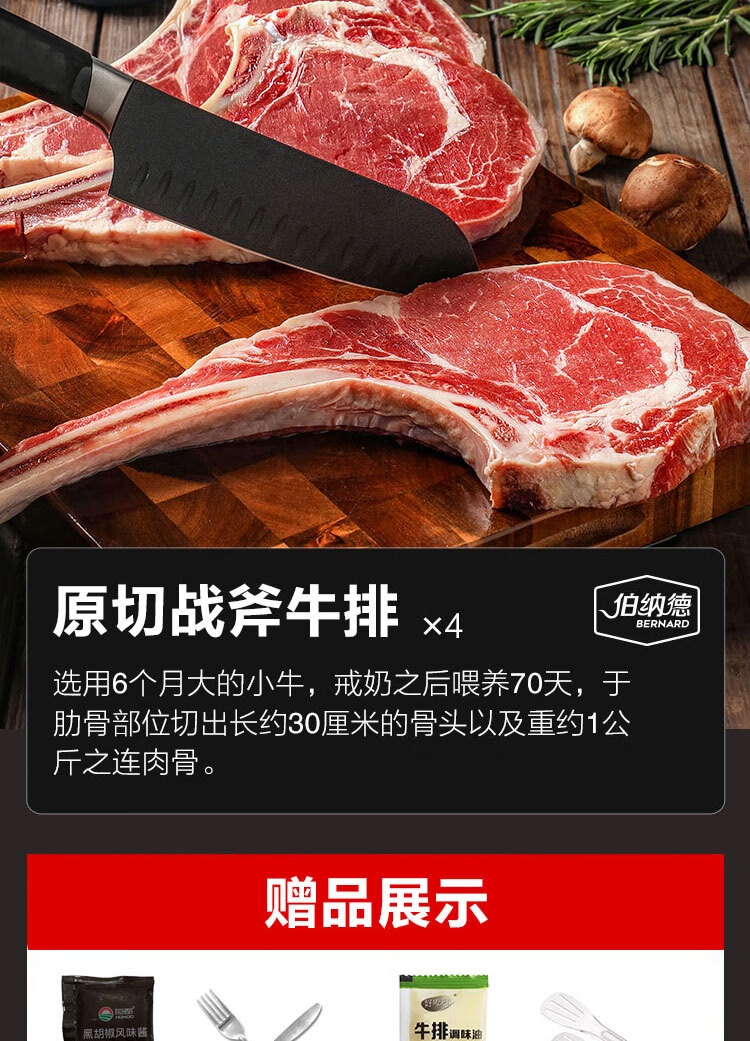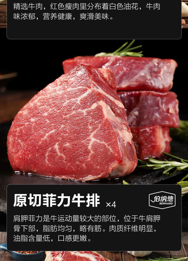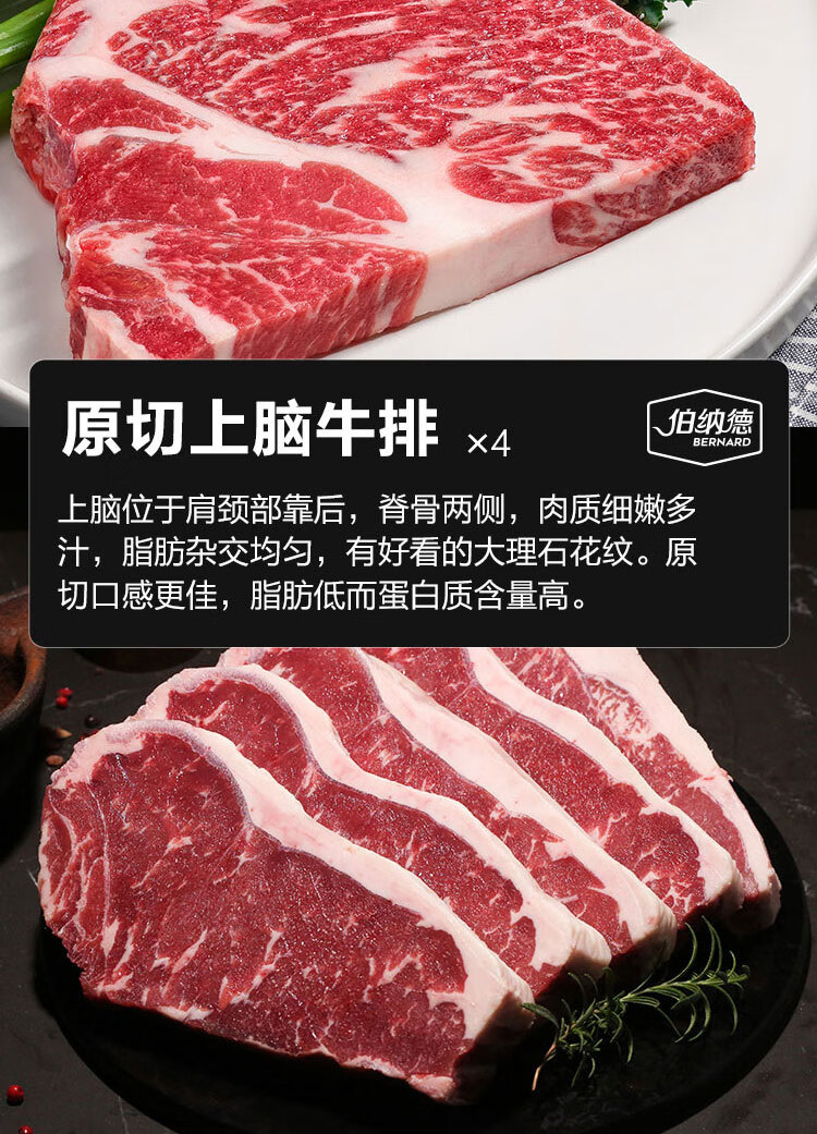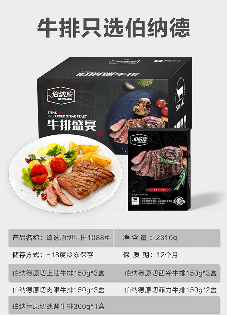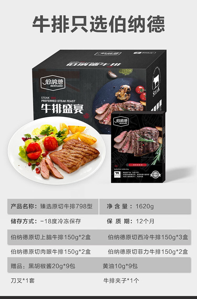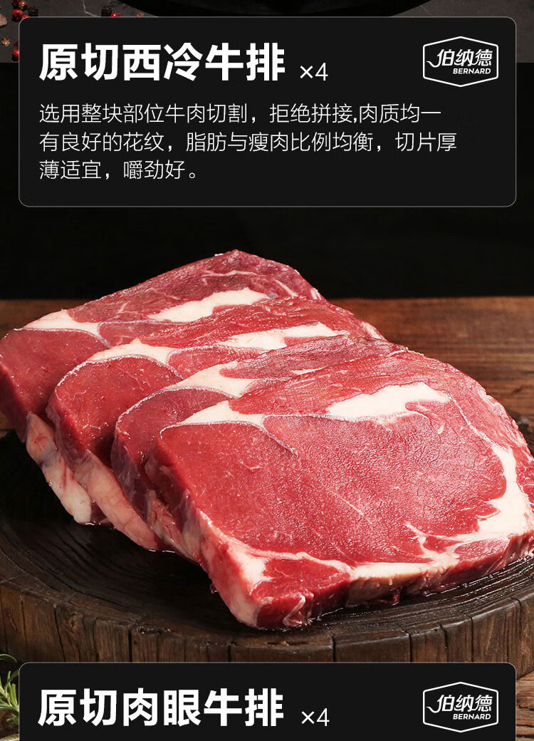 伯纳德 精品原切牛排礼盒558型1080g(顺丰冷链)