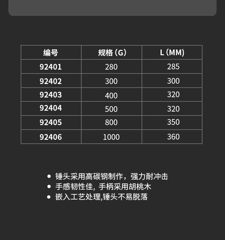 世达 工具 木柄钳工锤300克 92402 单位:把