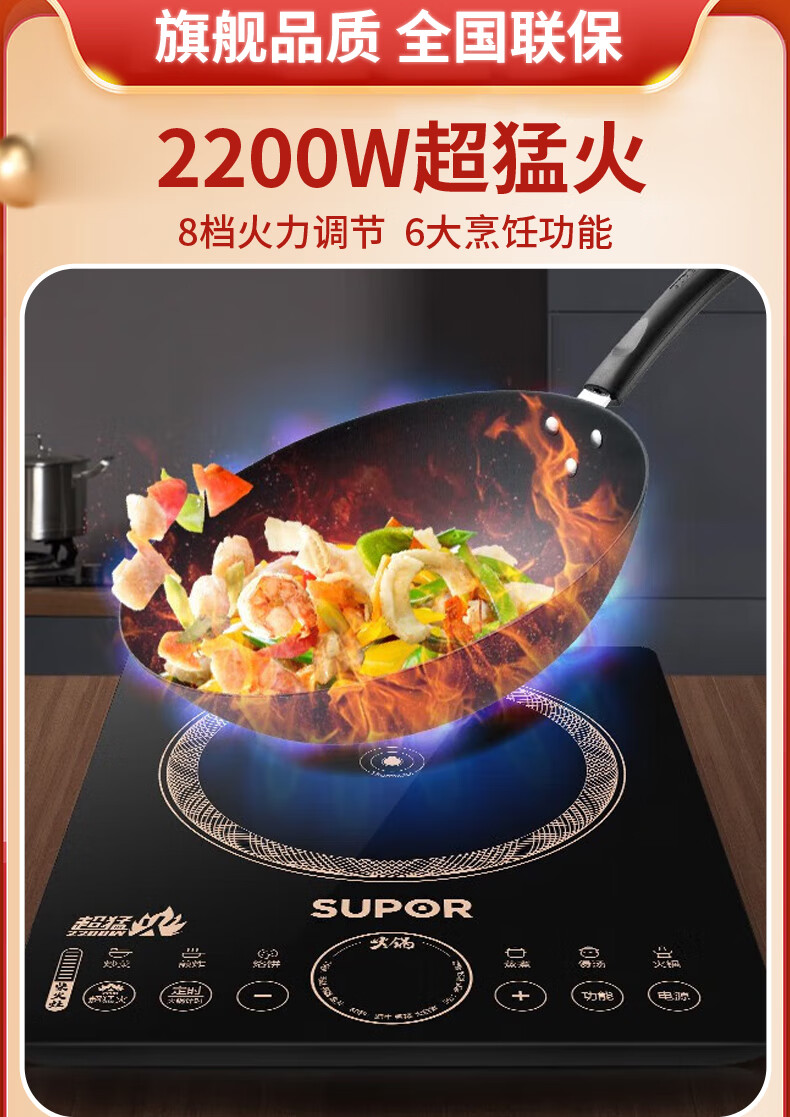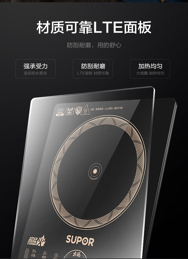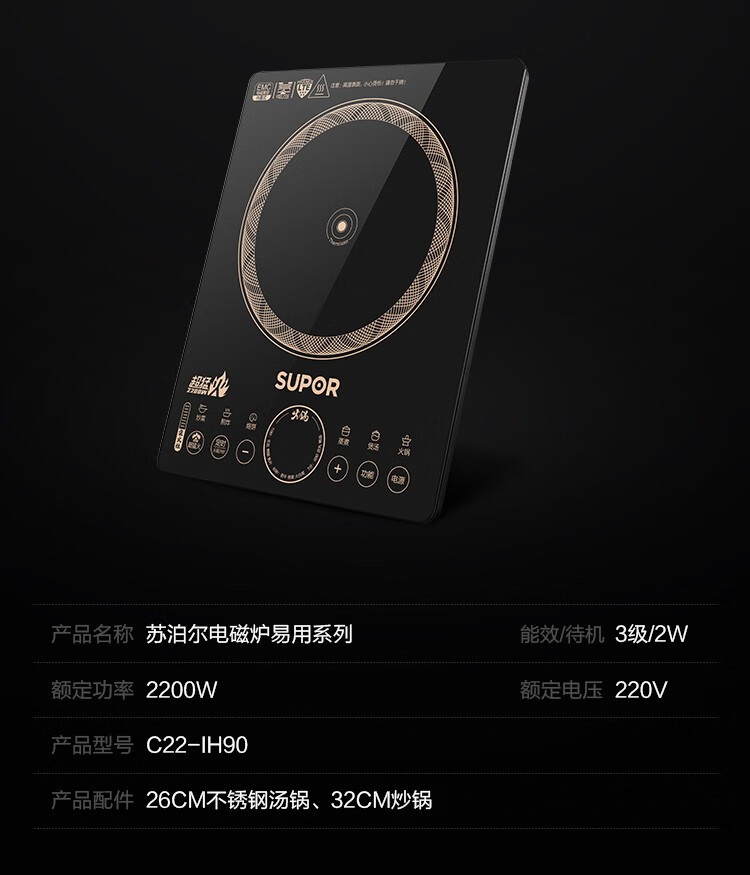 苏泊尔 电磁炉 C22-IH90 大功率触控按键八档火力纤薄设计定时功能