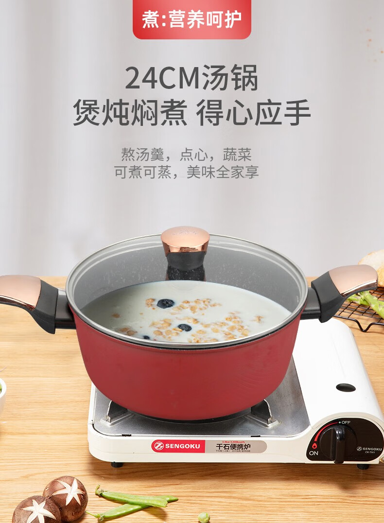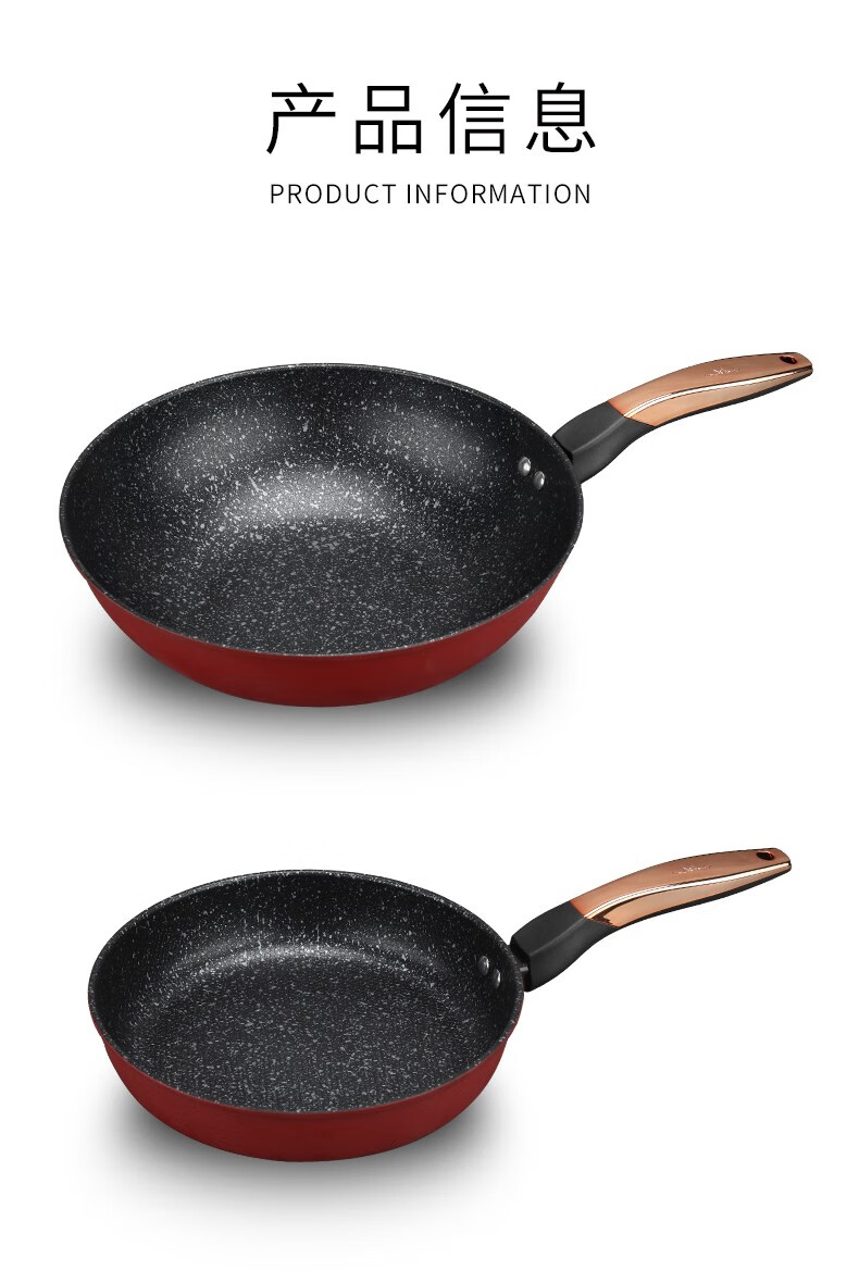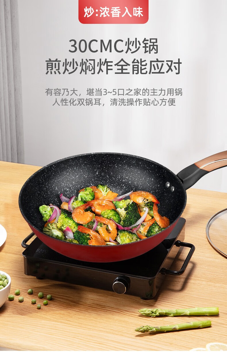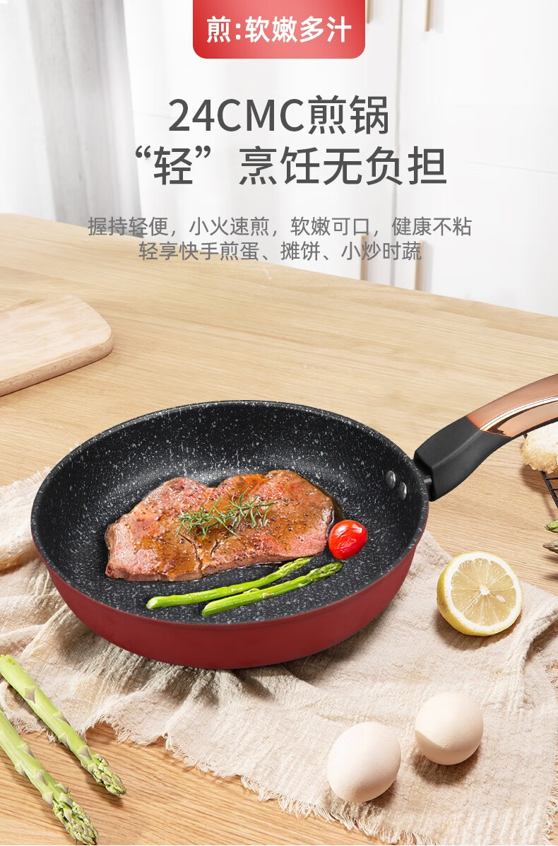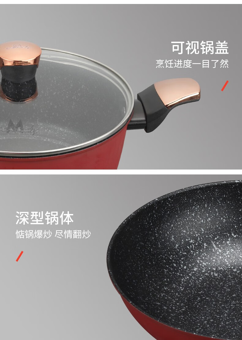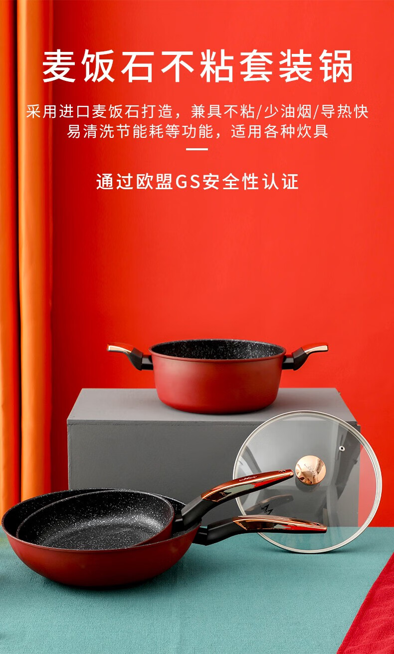 英麦斯厨具 珊瑚红锅具三件套(炒锅30cm+煎锅24cm+汤锅24cm)