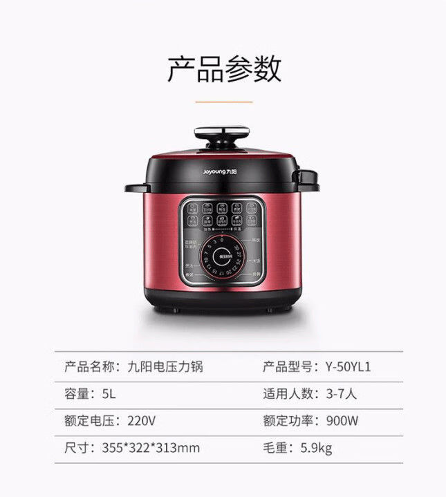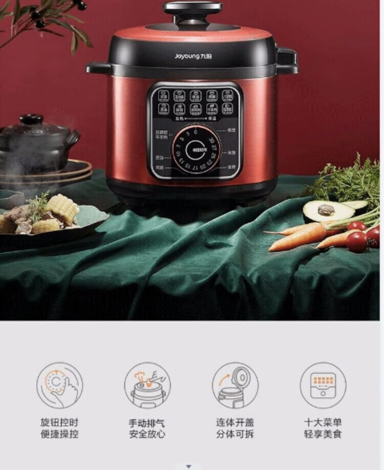 九阳 电压力锅智能家用多功能高压锅电饭煲5升全自动电压力锅50YL1