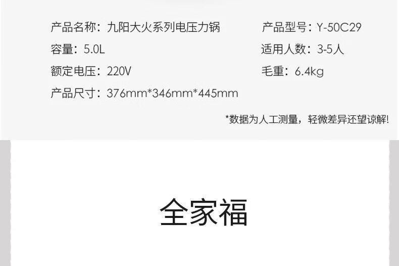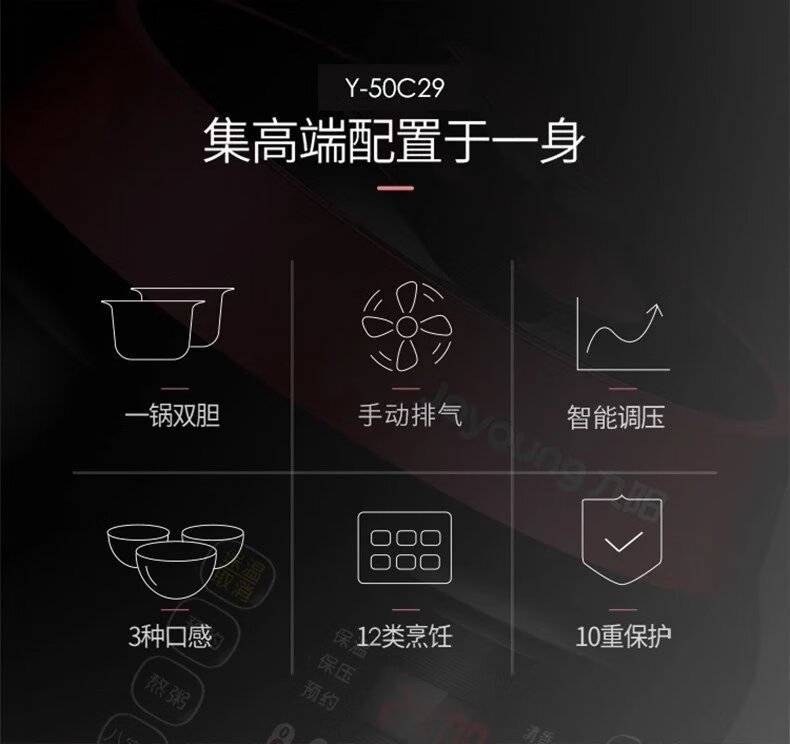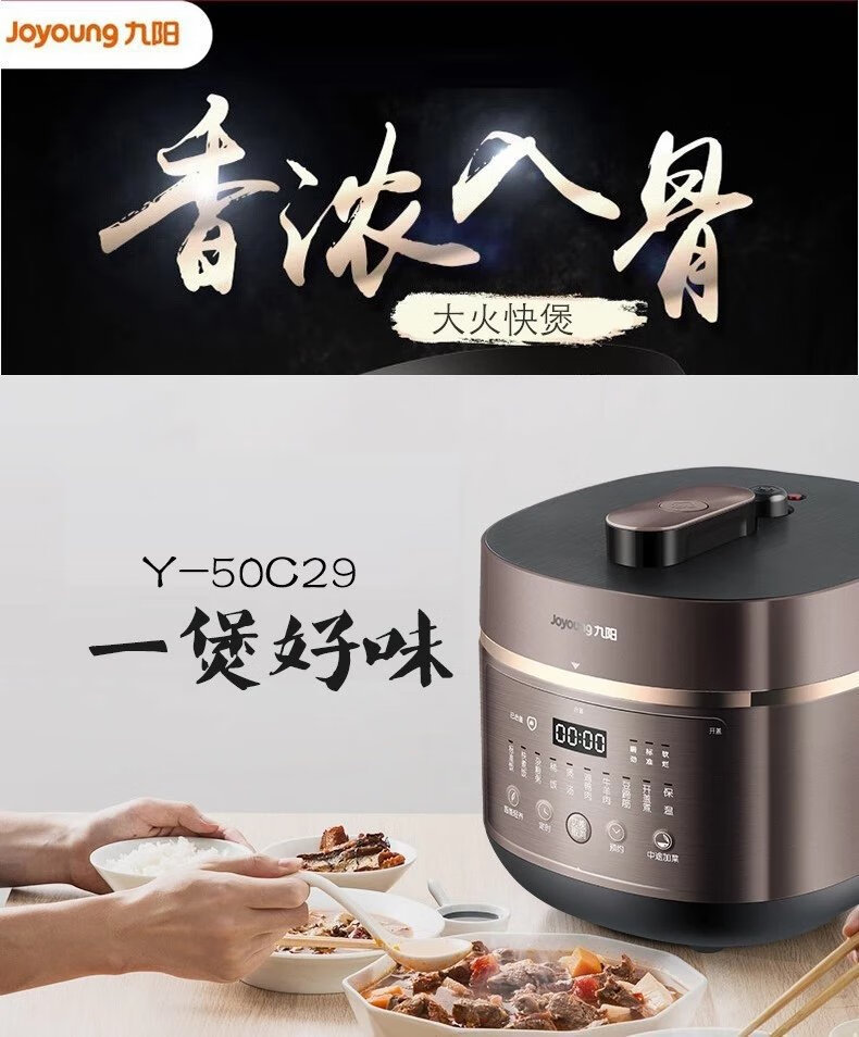 九阳 电压力锅5L家用压力煲方煲一煲双胆Y-50C29