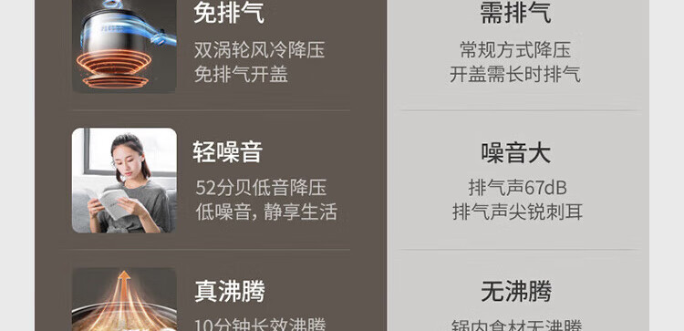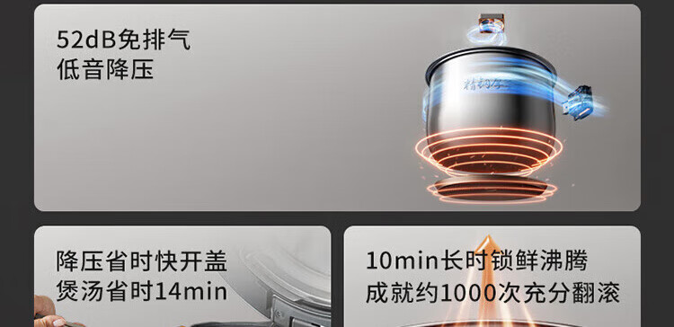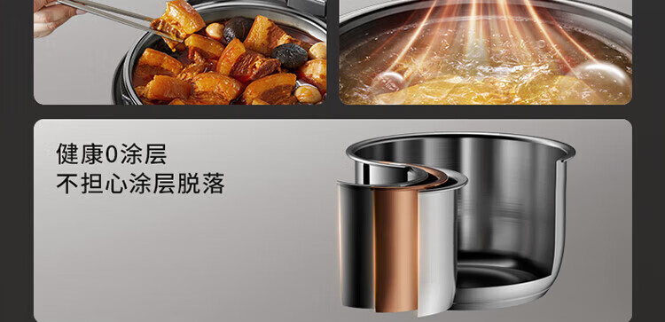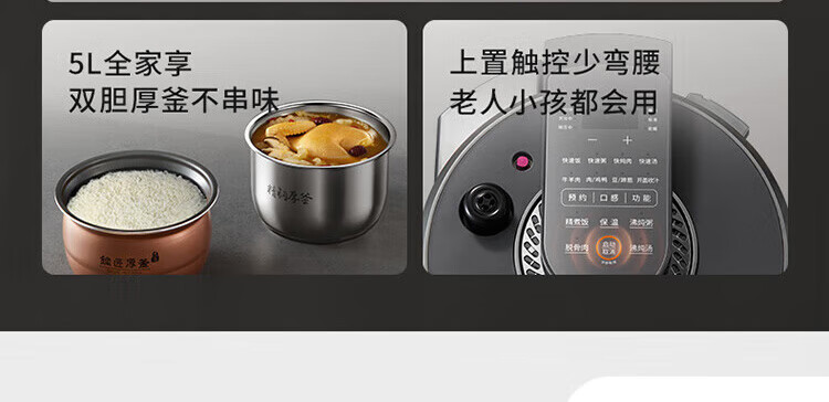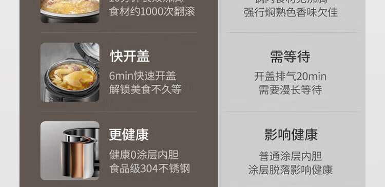 九阳 电压力锅304不锈钢一锅双胆5升压力煲上盖可拆卸高压锅 Y-50H60