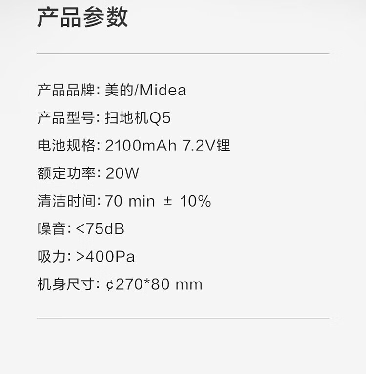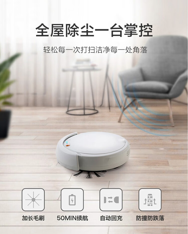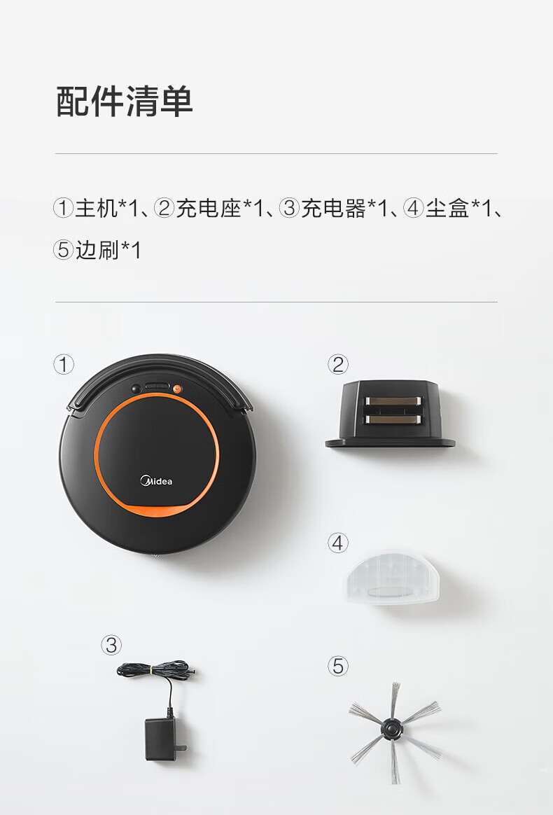 美的 美的扫吸一体全自动扫地机器人纤薄机身环境感应低噪 Q5【遥控款】