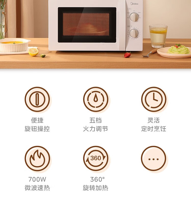美的 MM721NG1-PS 微波炉家用20L多功能机械转盘式