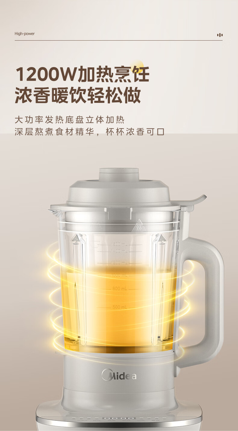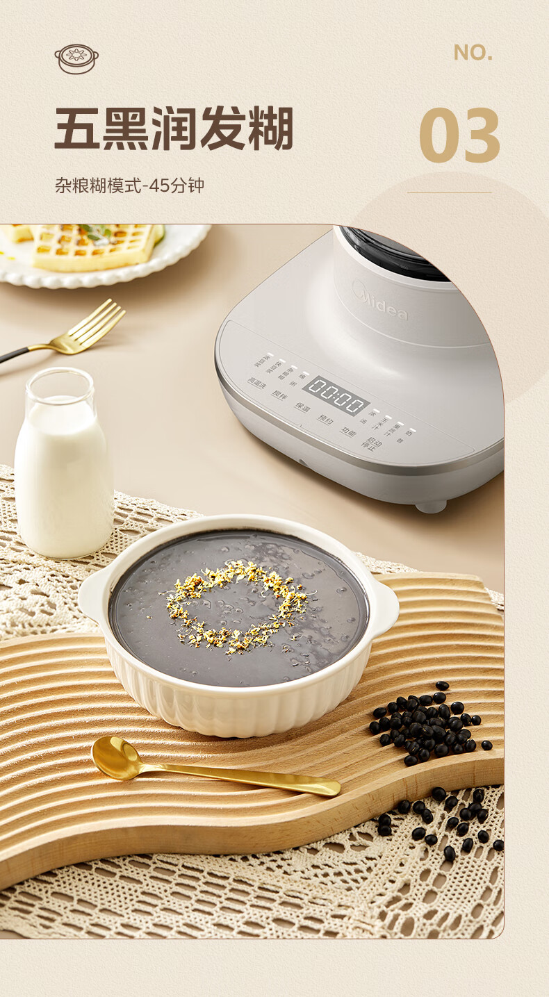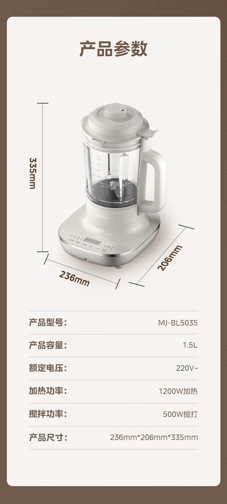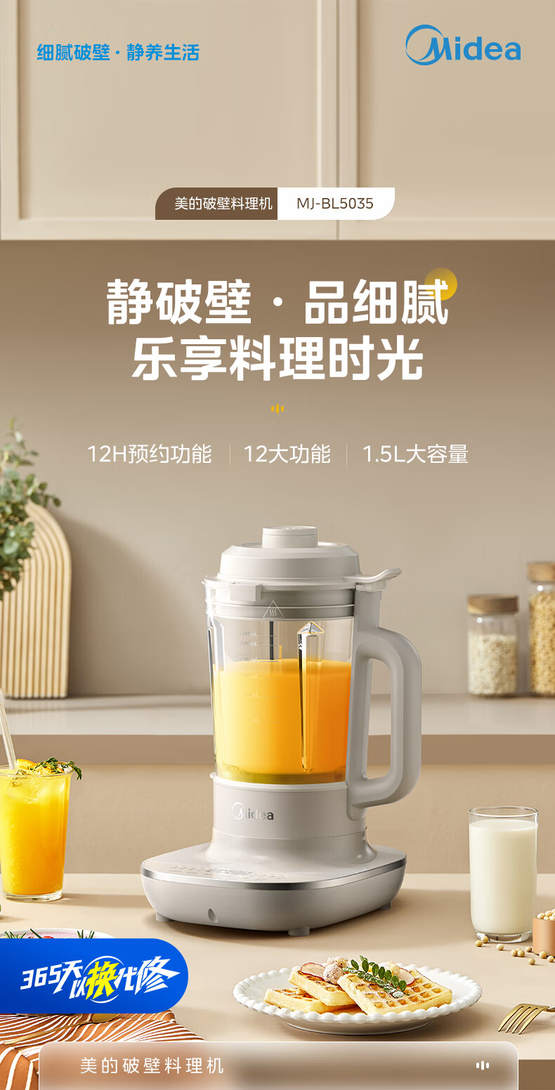 美的 破壁机多功能全自动免煮五谷杂粮自动保温1.5升MJ-BL5035 8叶精钢 1200w速热