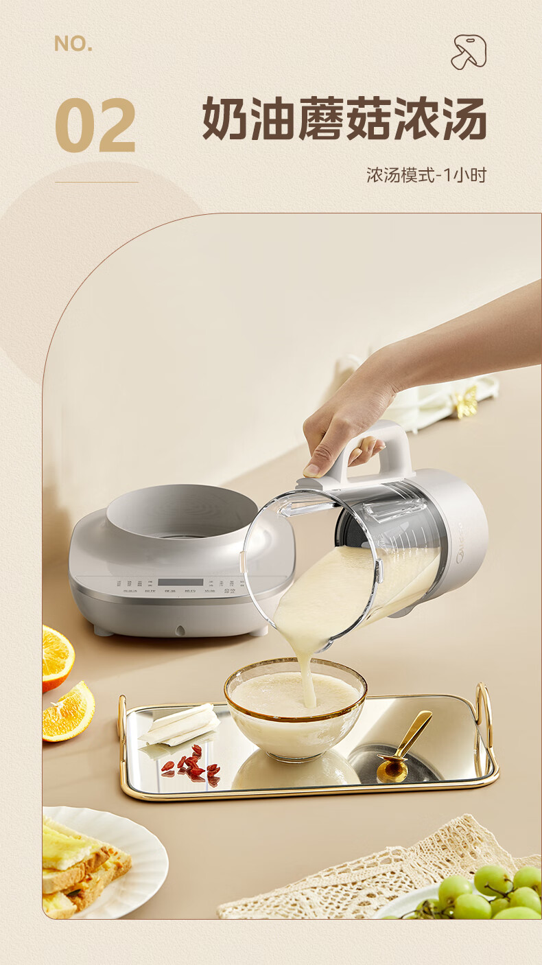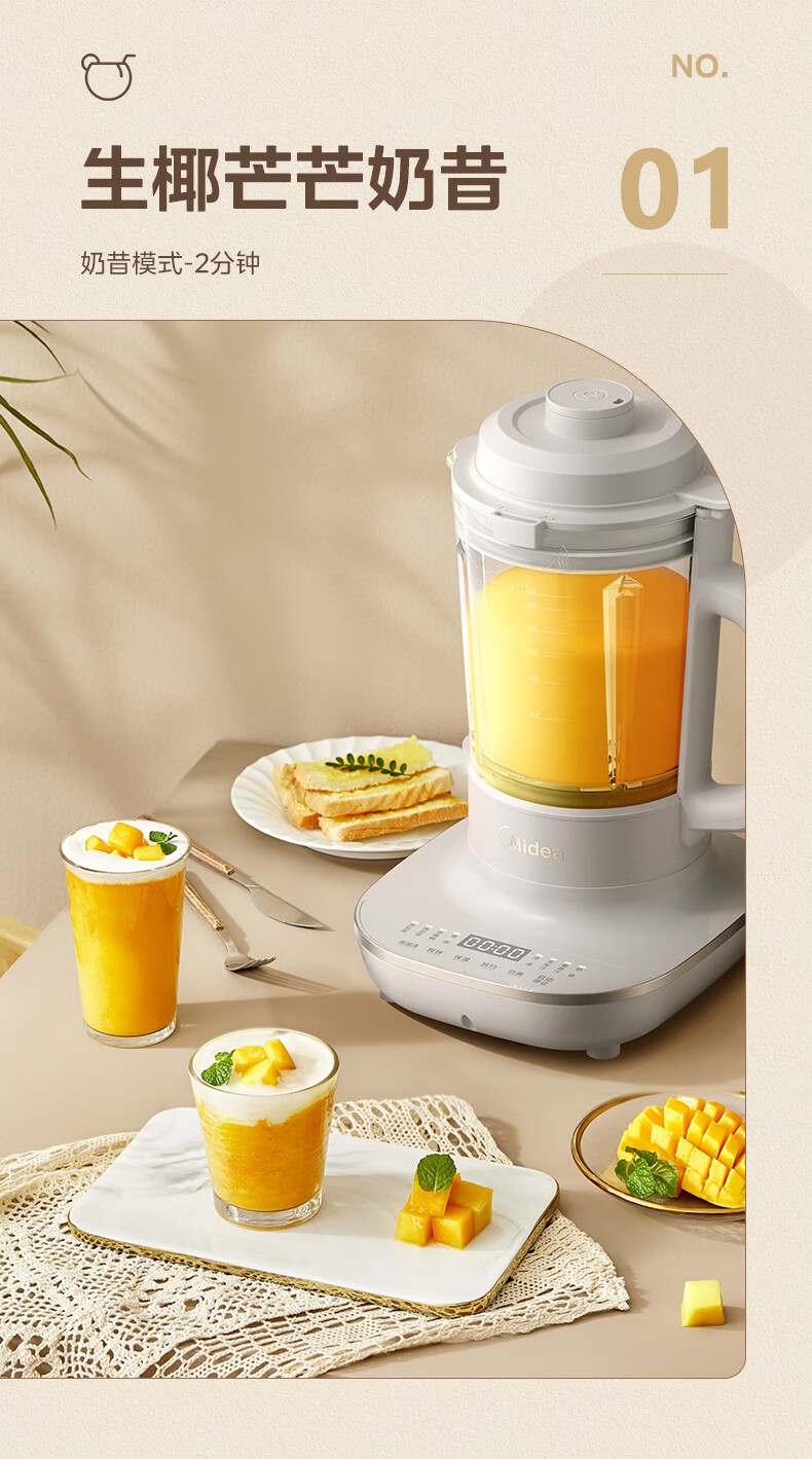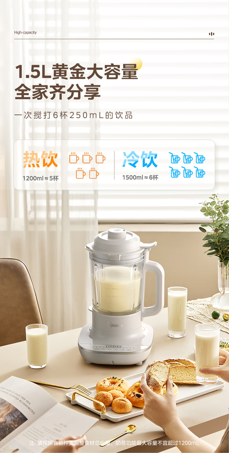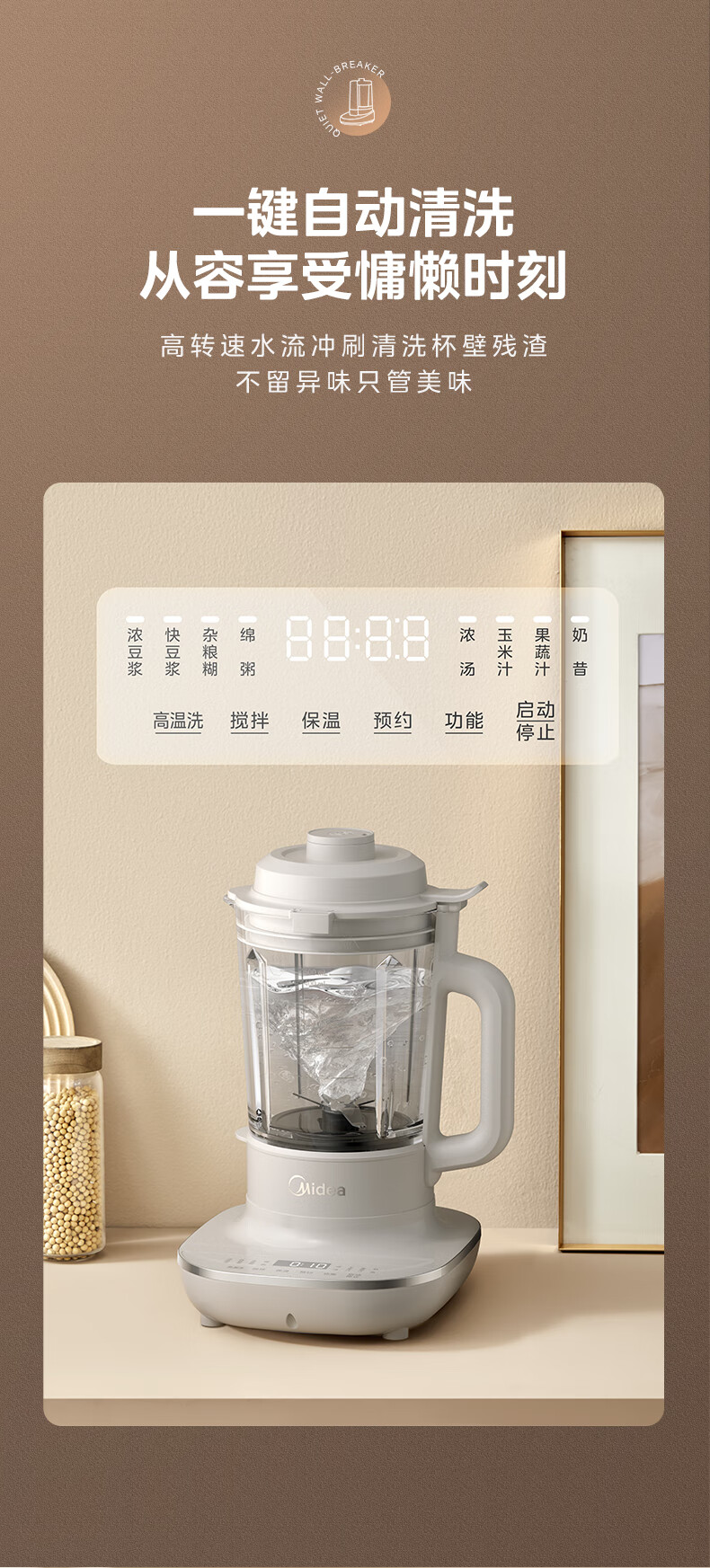 美的 破壁机多功能全自动免煮五谷杂粮自动保温1.5升MJ-BL5035 8叶精钢 1200w速热