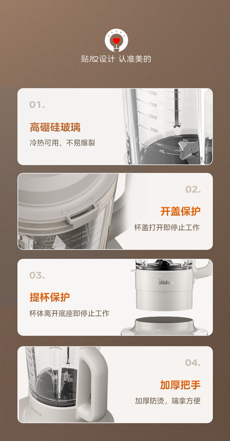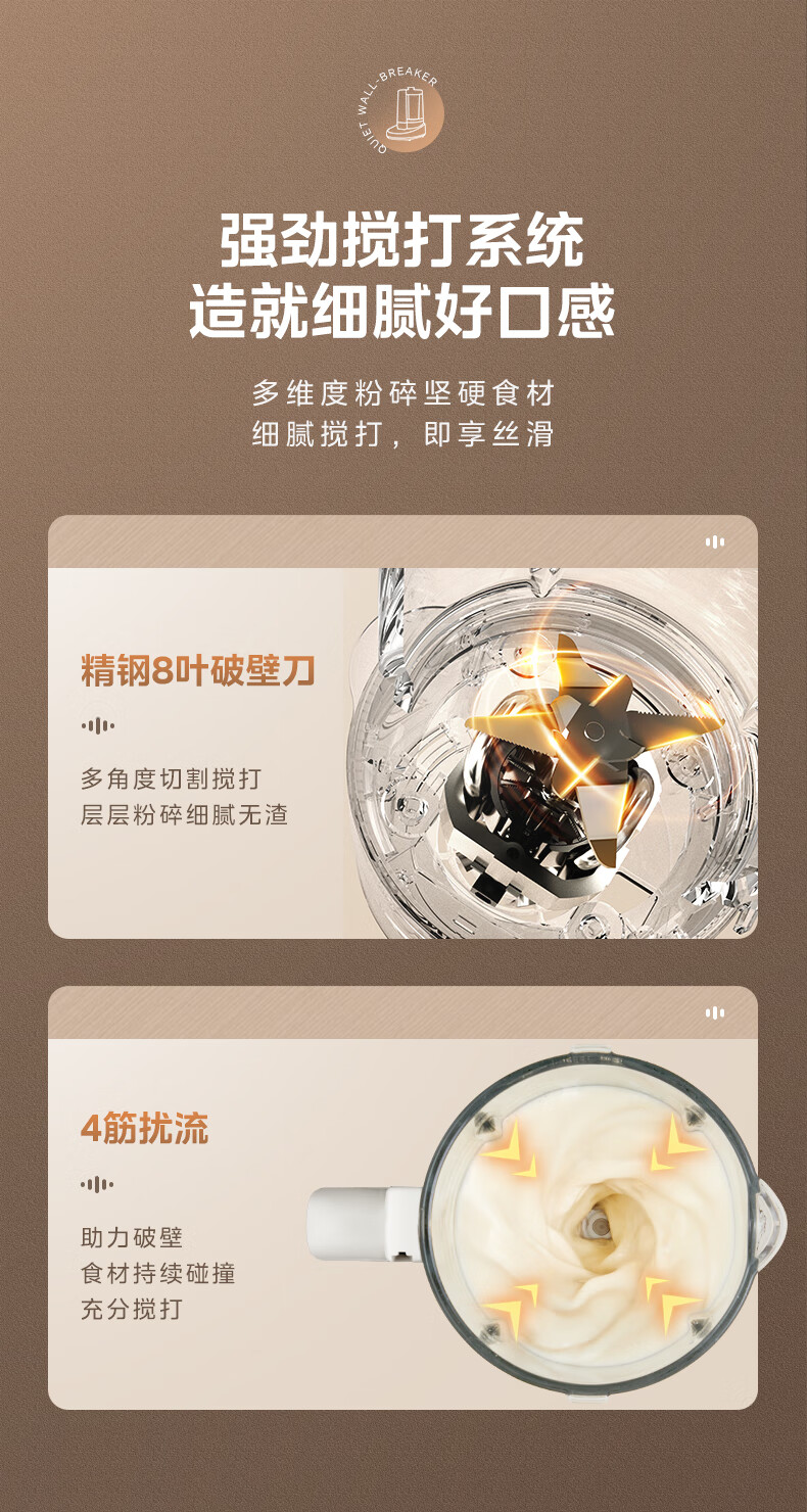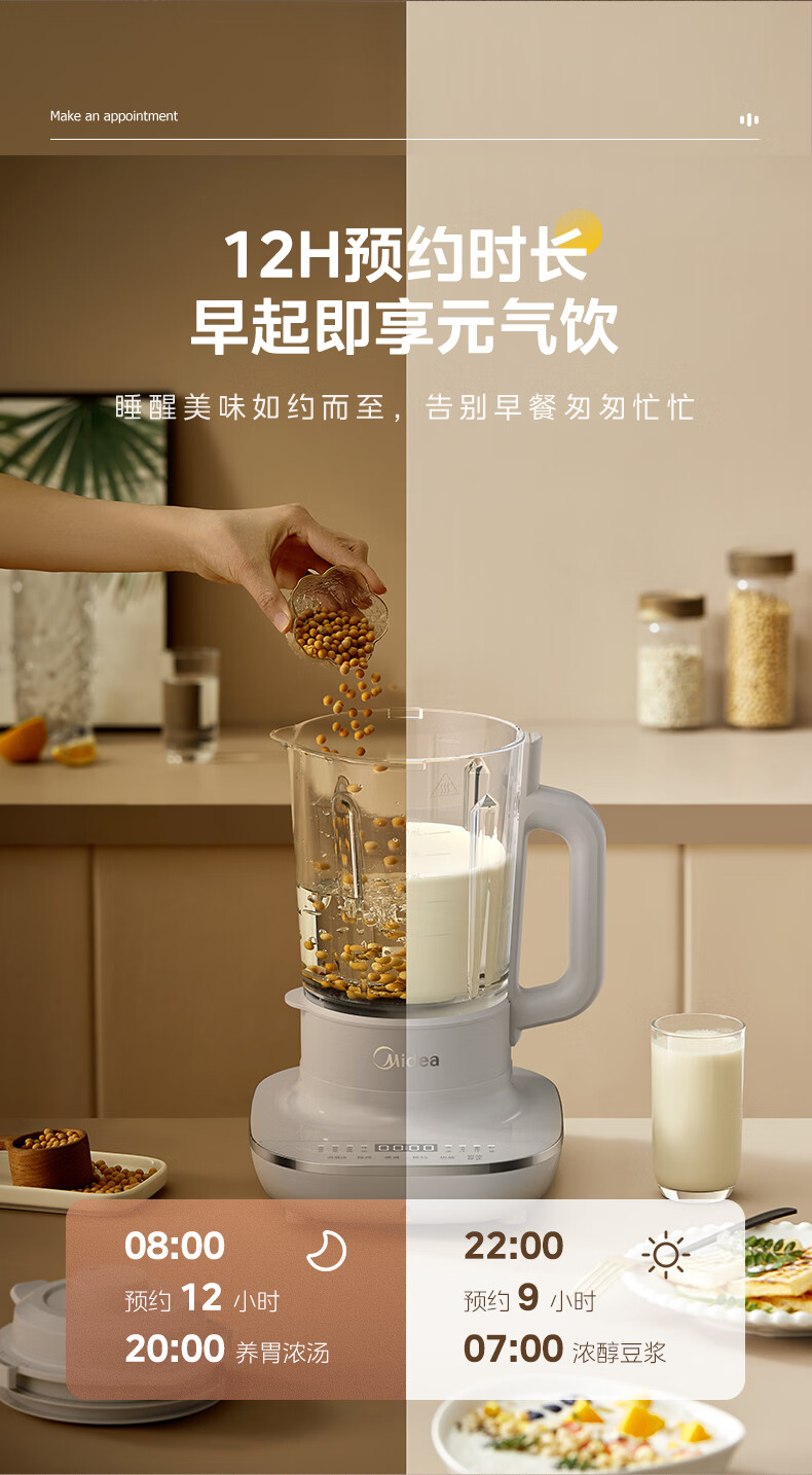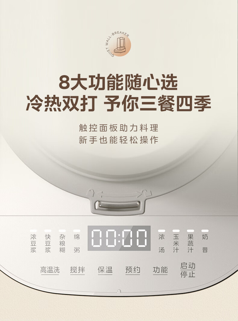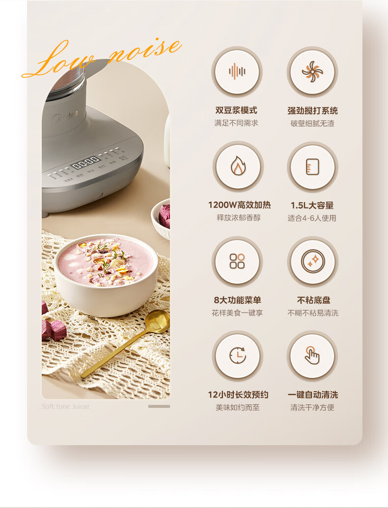 美的 破壁机多功能全自动免煮五谷杂粮自动保温1.5升MJ-BL5035 8叶精钢 1200w速热