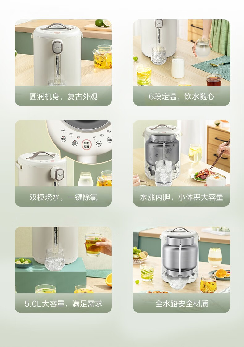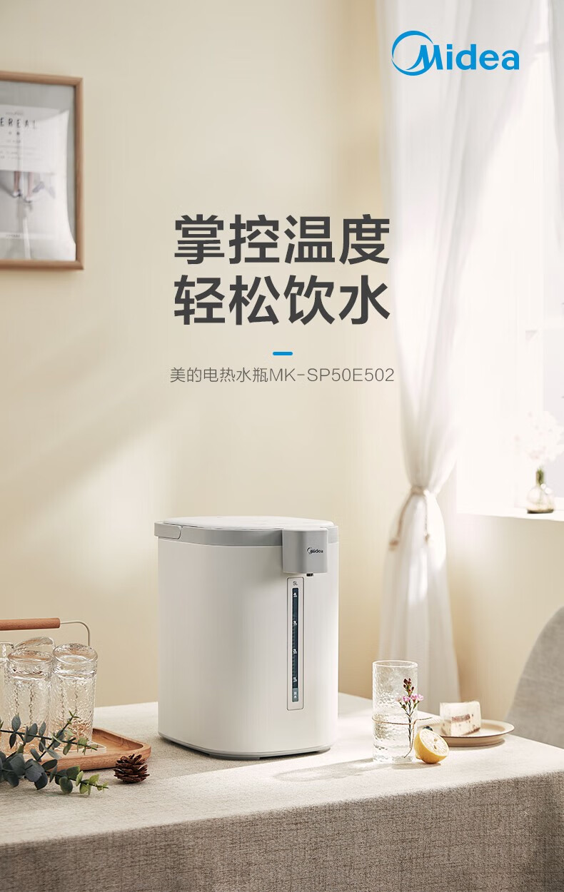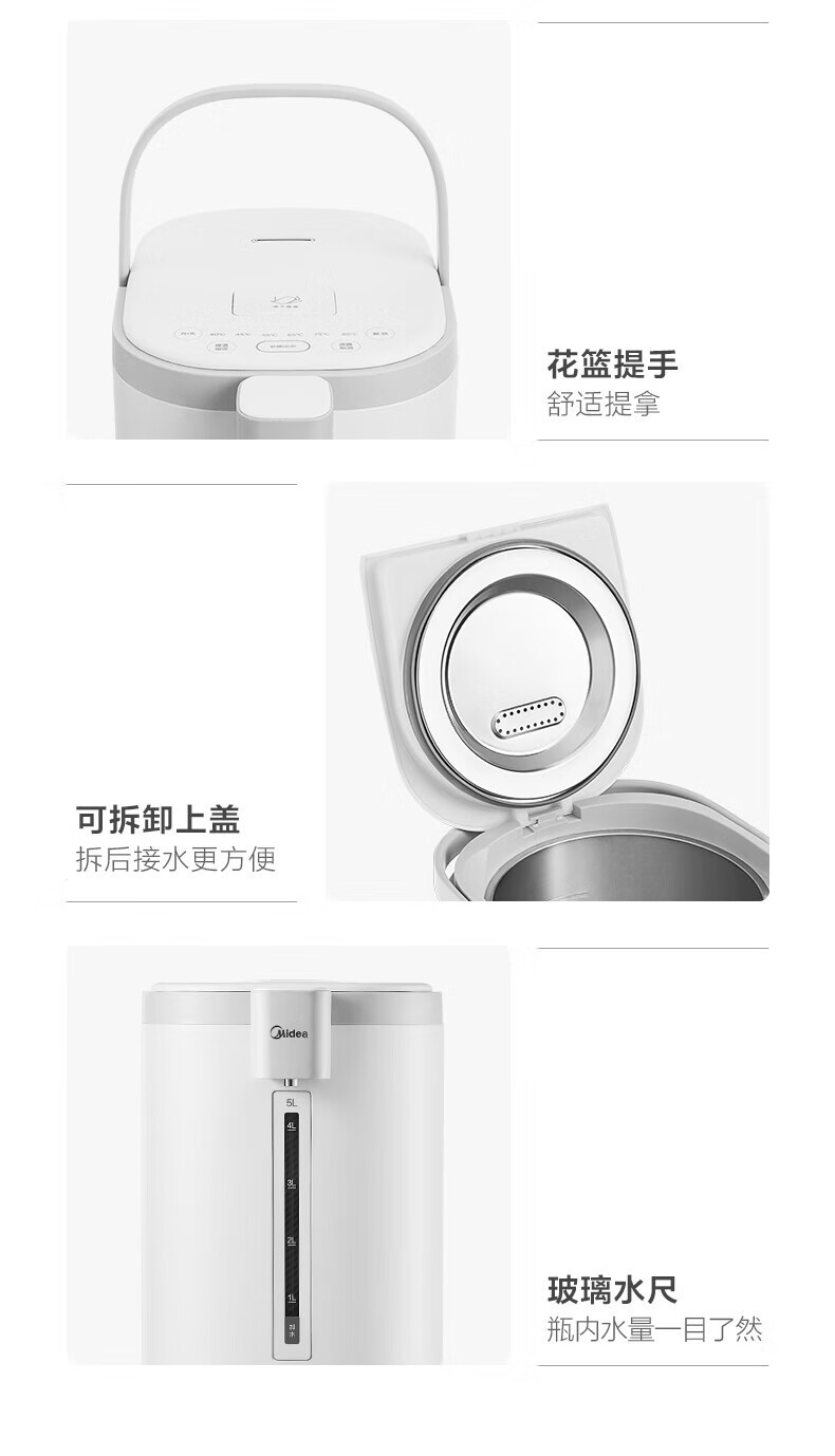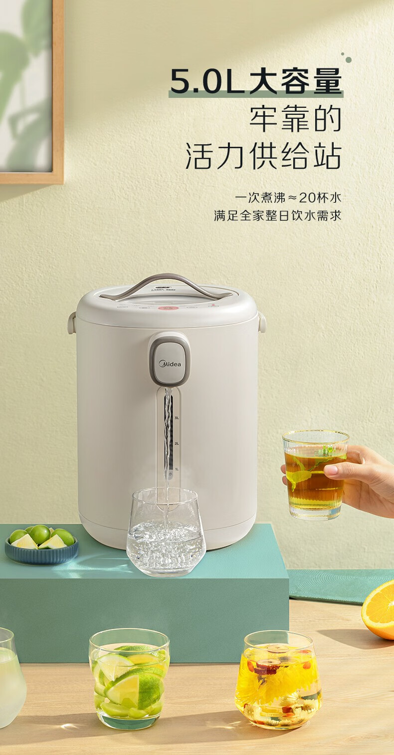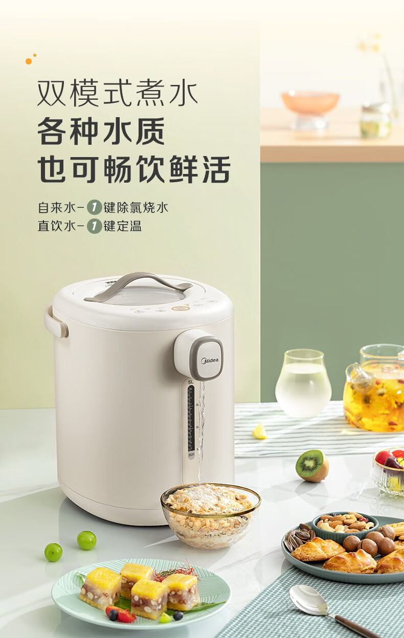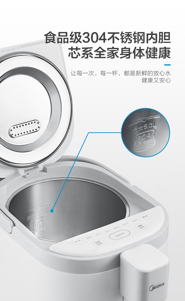 美的 电热水瓶热水壶5升新款智能恒温电热水瓶家用全自动多功能保温除氯防烫 【多段控温丨一键除氯】MK-P11X