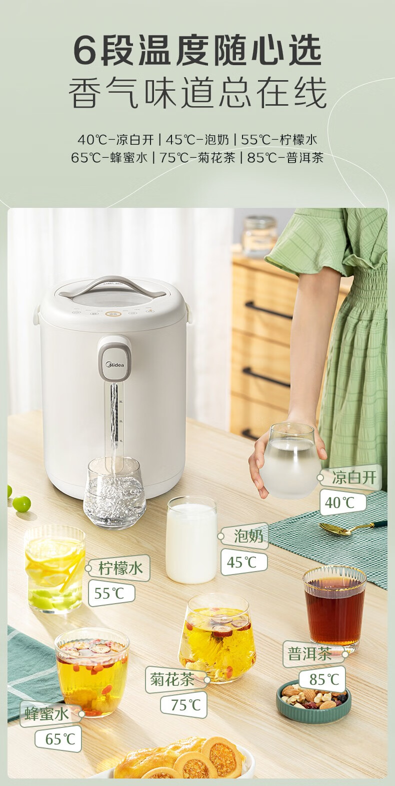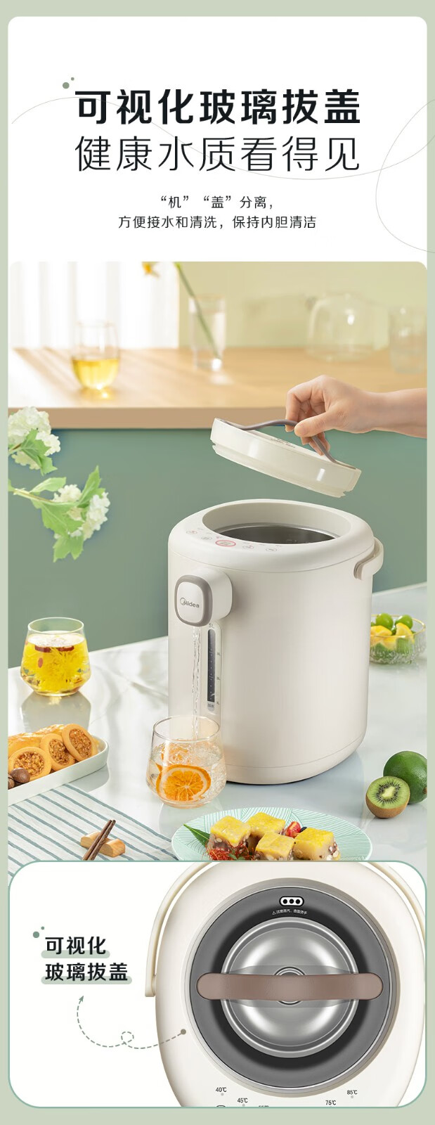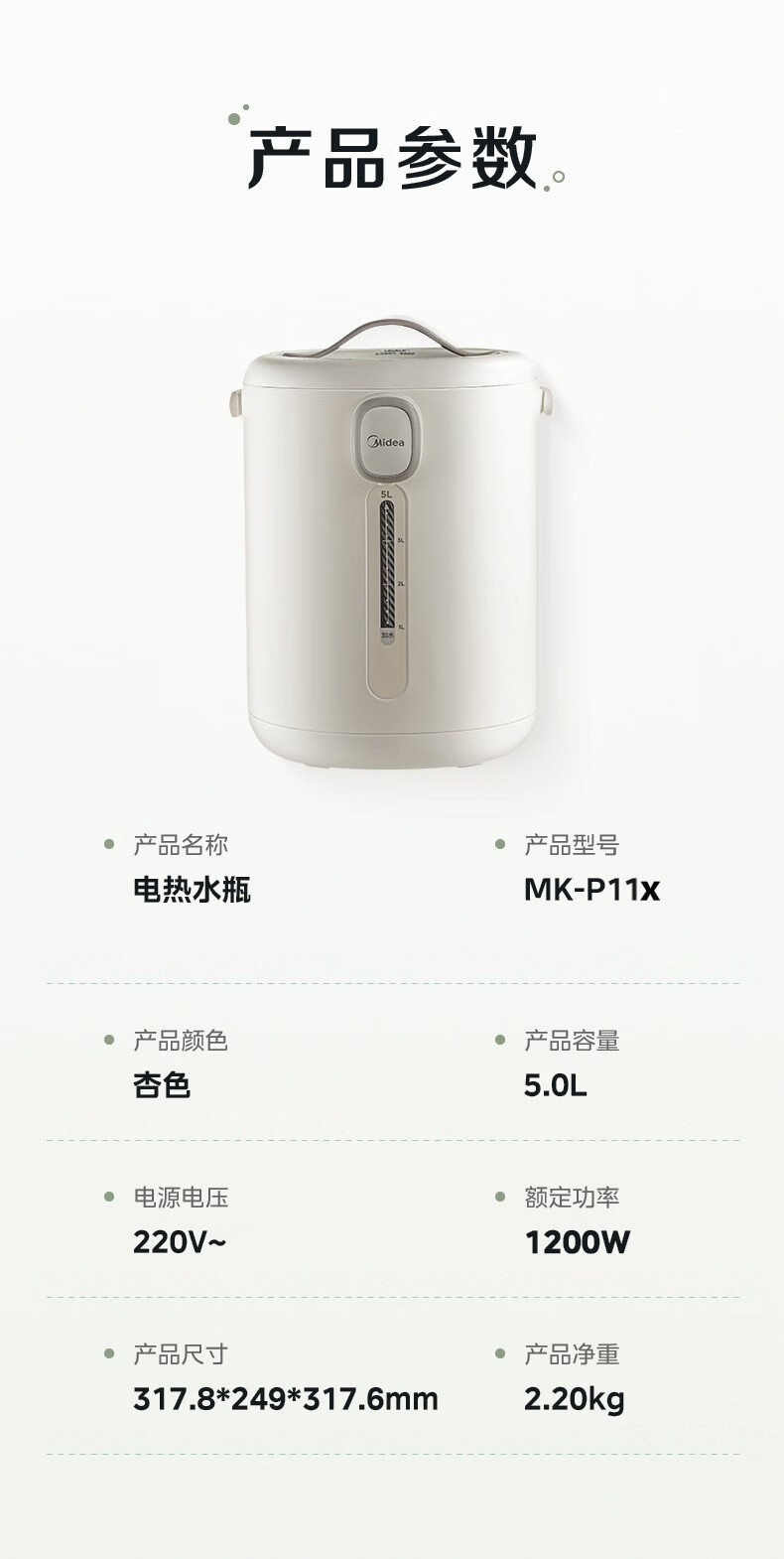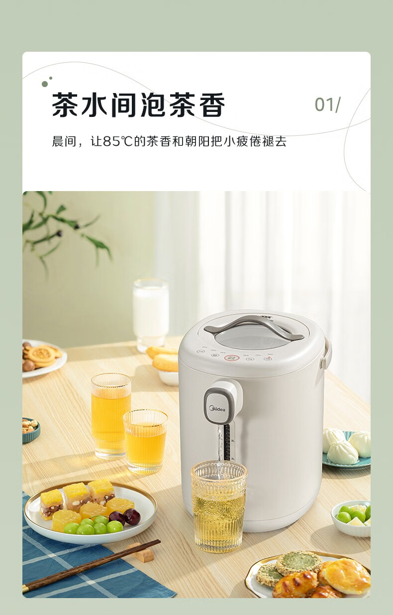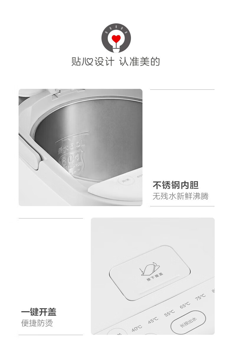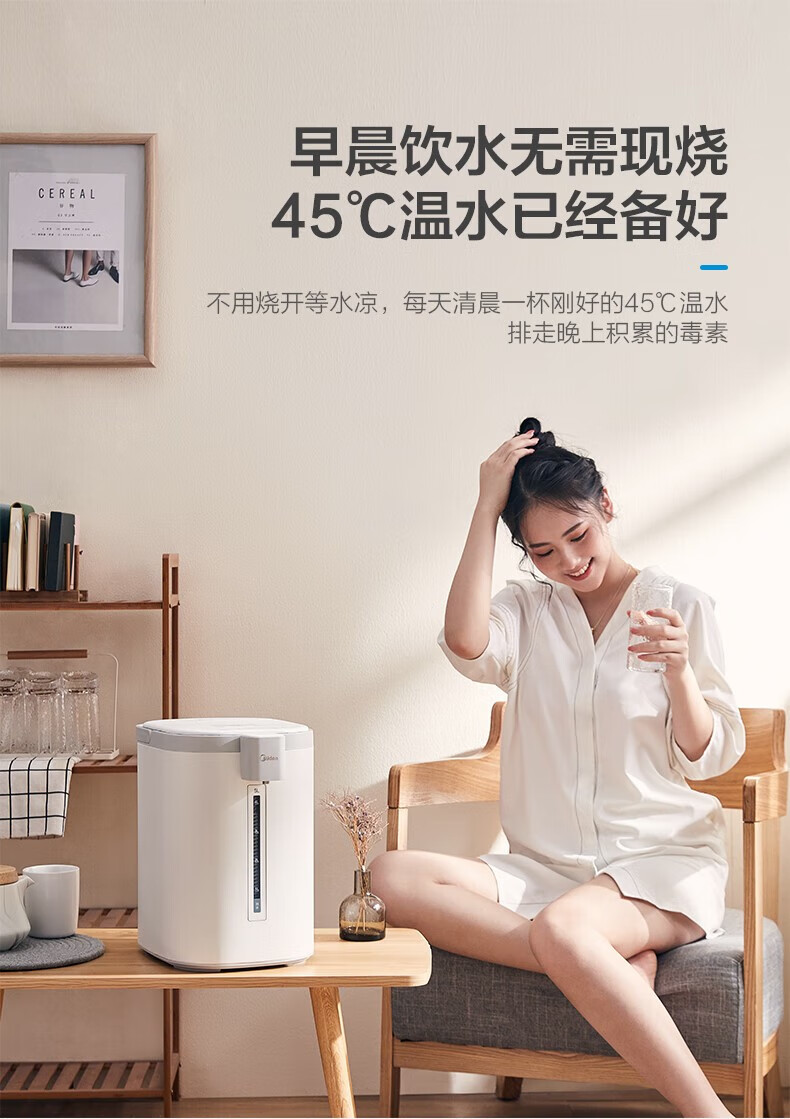 美的 电热水瓶热水壶5升新款智能恒温电热水瓶家用全自动多功能保温除氯防烫 【多段控温丨一键除氯】MK-P11X