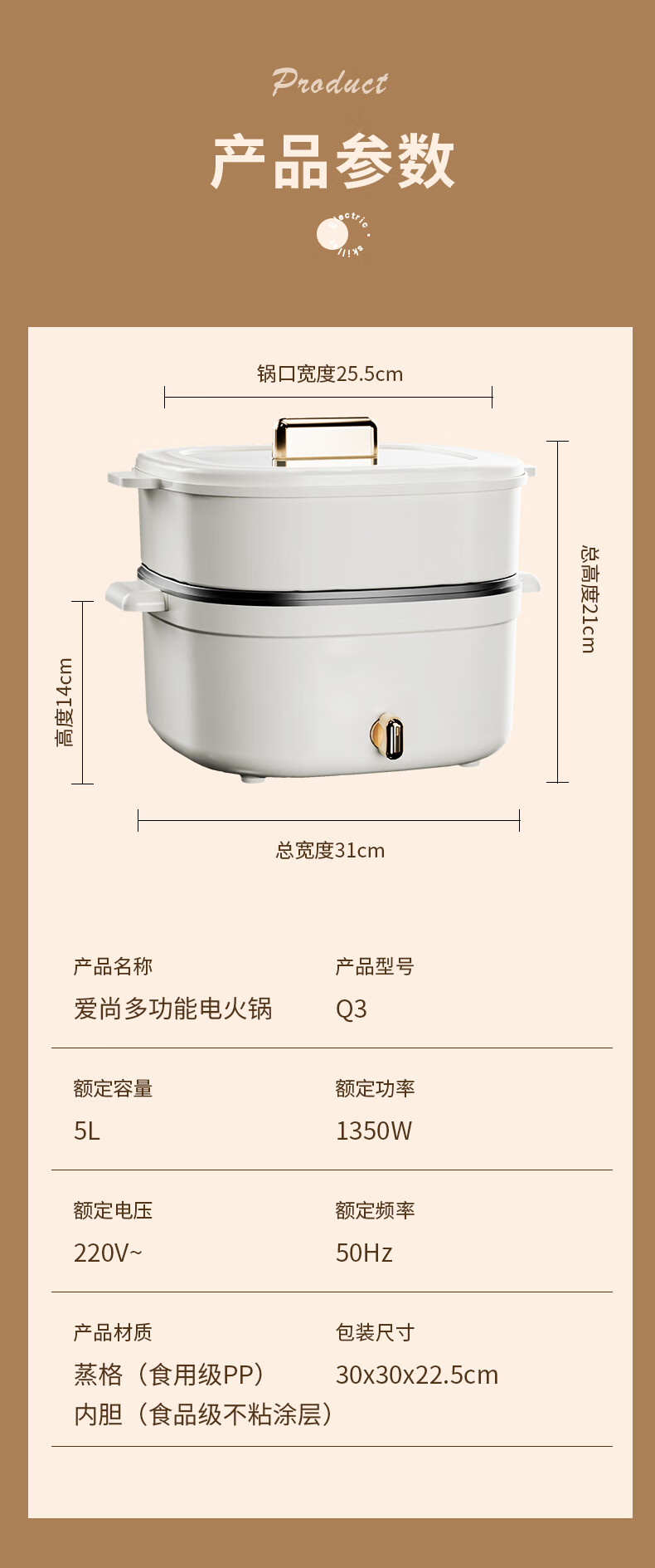 英麦斯厨具 爱尚多功能电火锅蒸锅