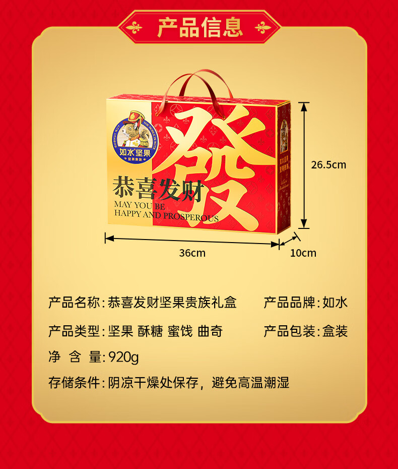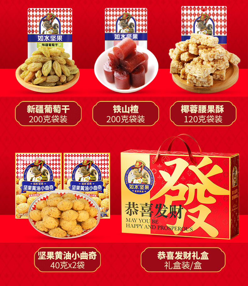 如水 恭喜发财礼盒920g干果休闲零食大礼包