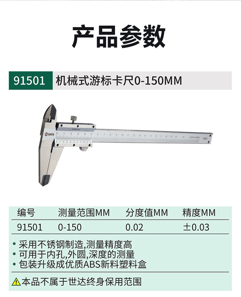世达(SATA)91501 机械式游标卡尺0-150mm 单位:把