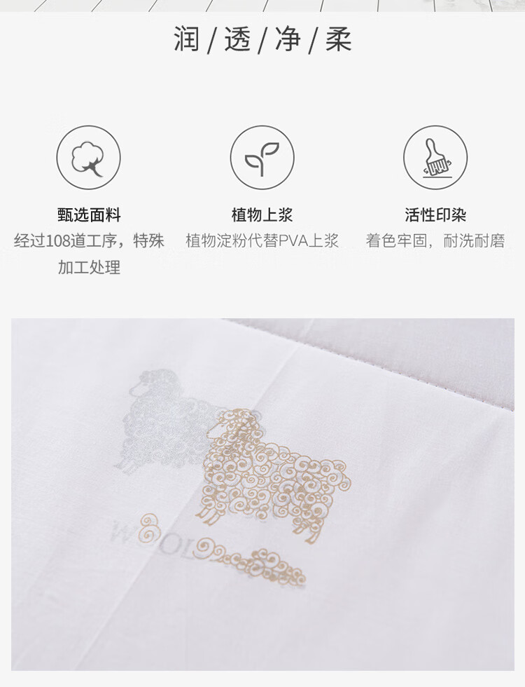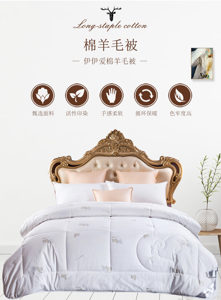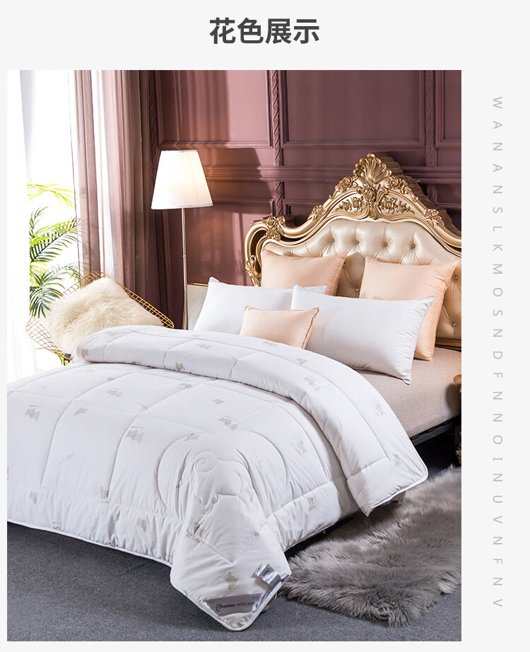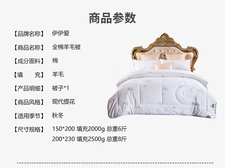 伊伊爱 DB-8YMB-001全棉防羽布丝光羊毛被秋冬保暖被子200*230cm总重7.8斤