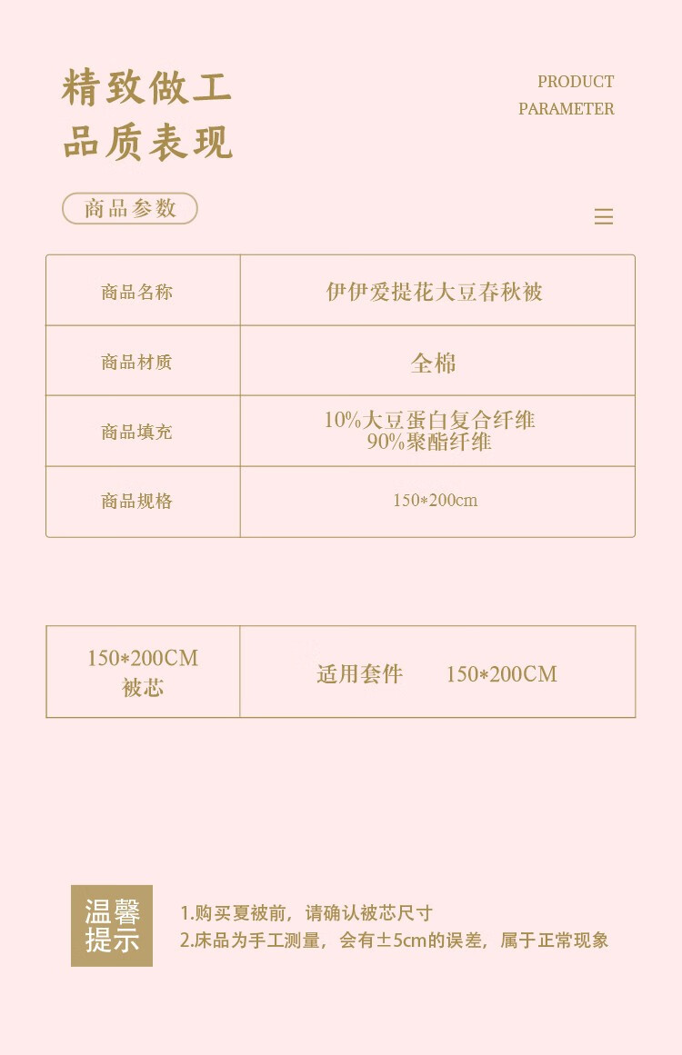 伊伊爱 提花大豆春秋被粉色 200*230cm/BZ0LFS2201114总重4.5斤