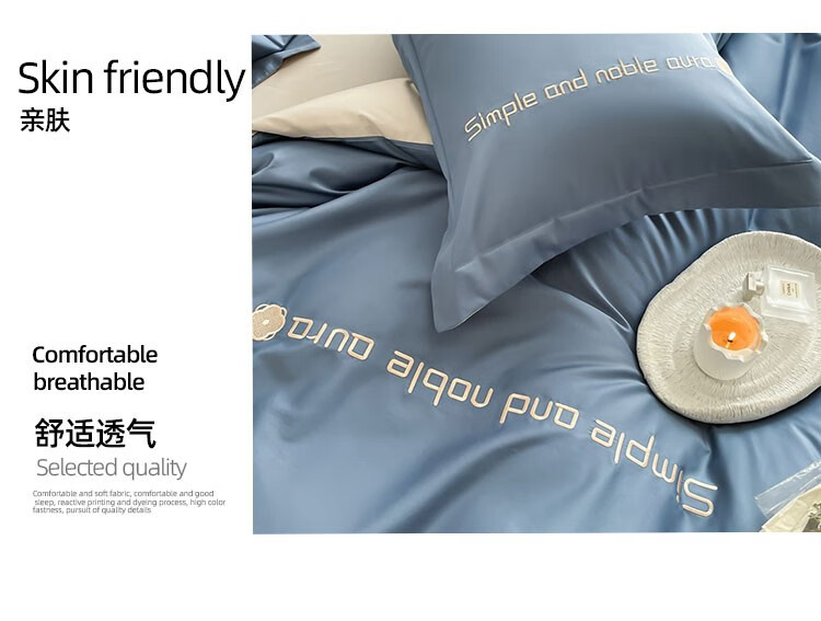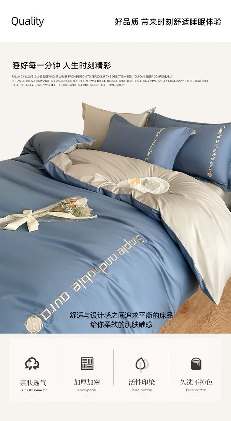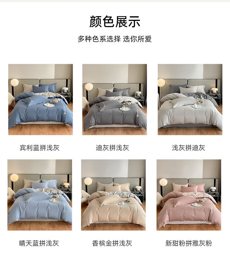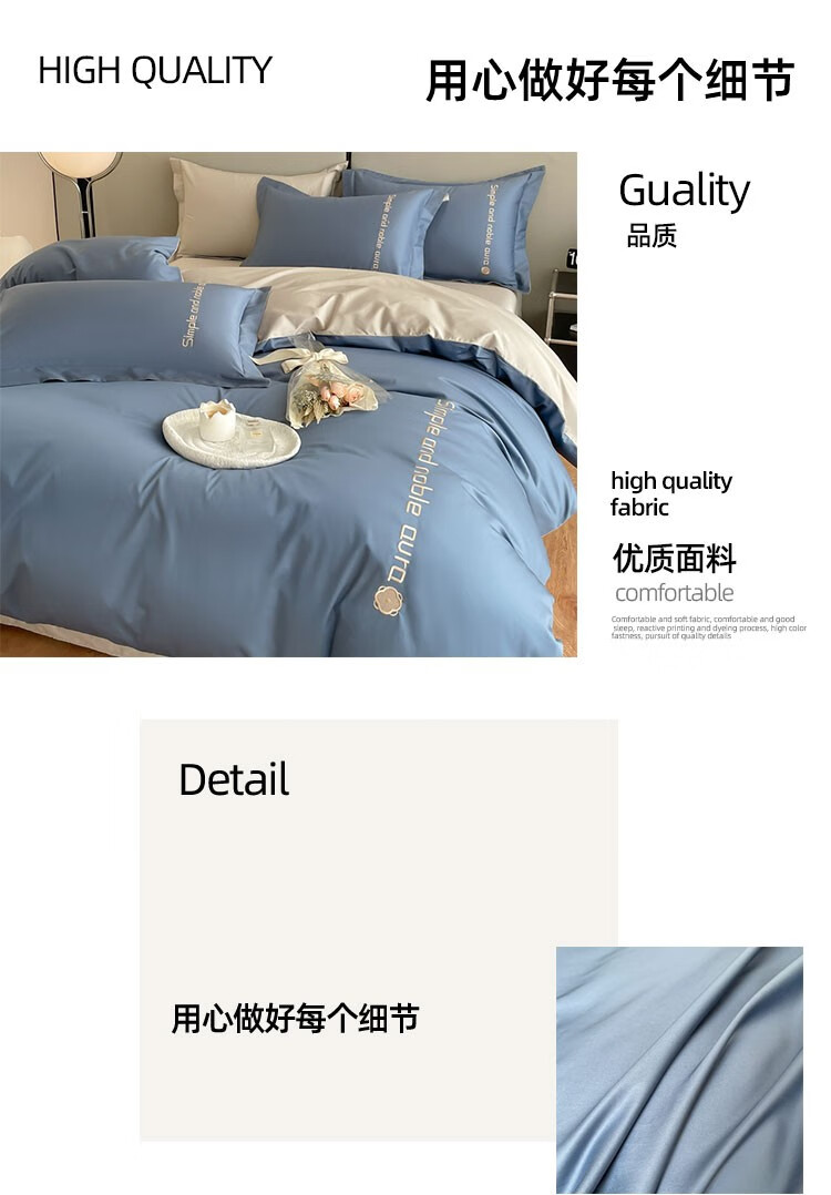 伊伊爱 高精密伯格纯棉四件套 宾利蓝拼浅灰 200*230cm/TJ0HJC2301969