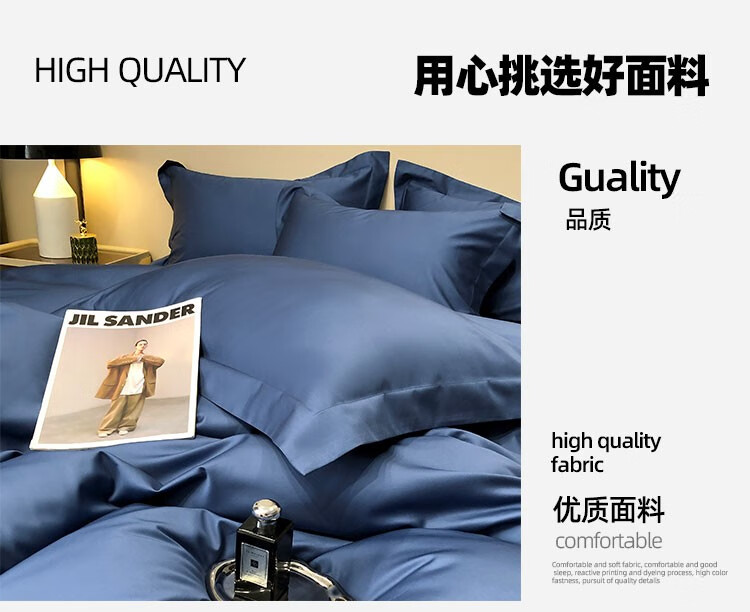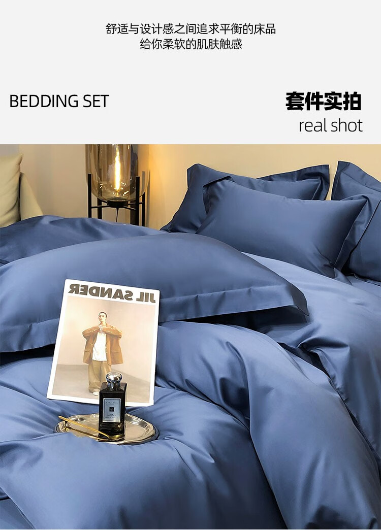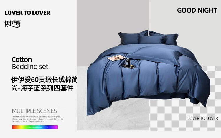 伊伊爱 60贡缎长绒棉简尚-海芋蓝系列四件套 200*230cm/TJ0KY02302043