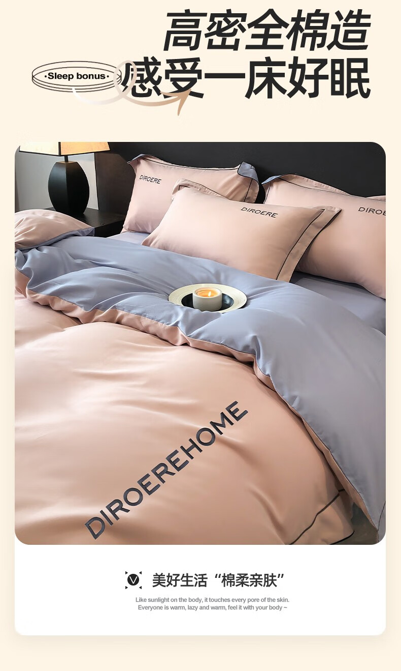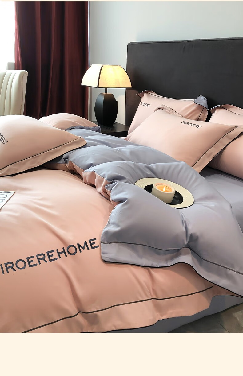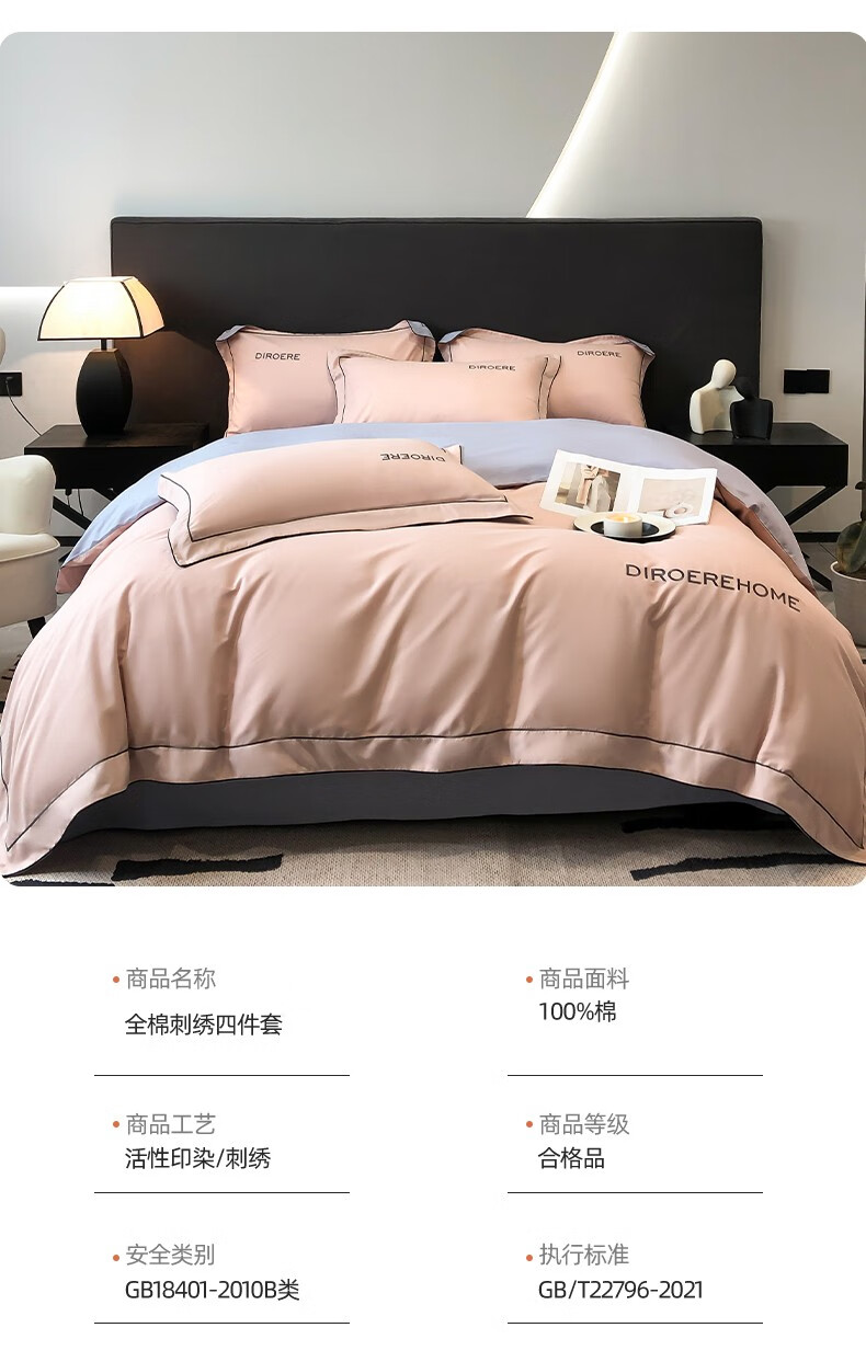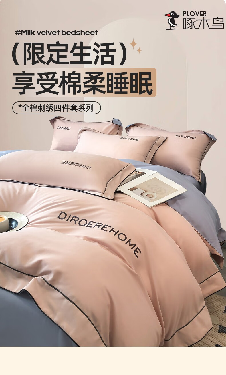 PLOVER 啄木鸟家纺40S长绒棉绣花四件套 香叶粉 200*230cm