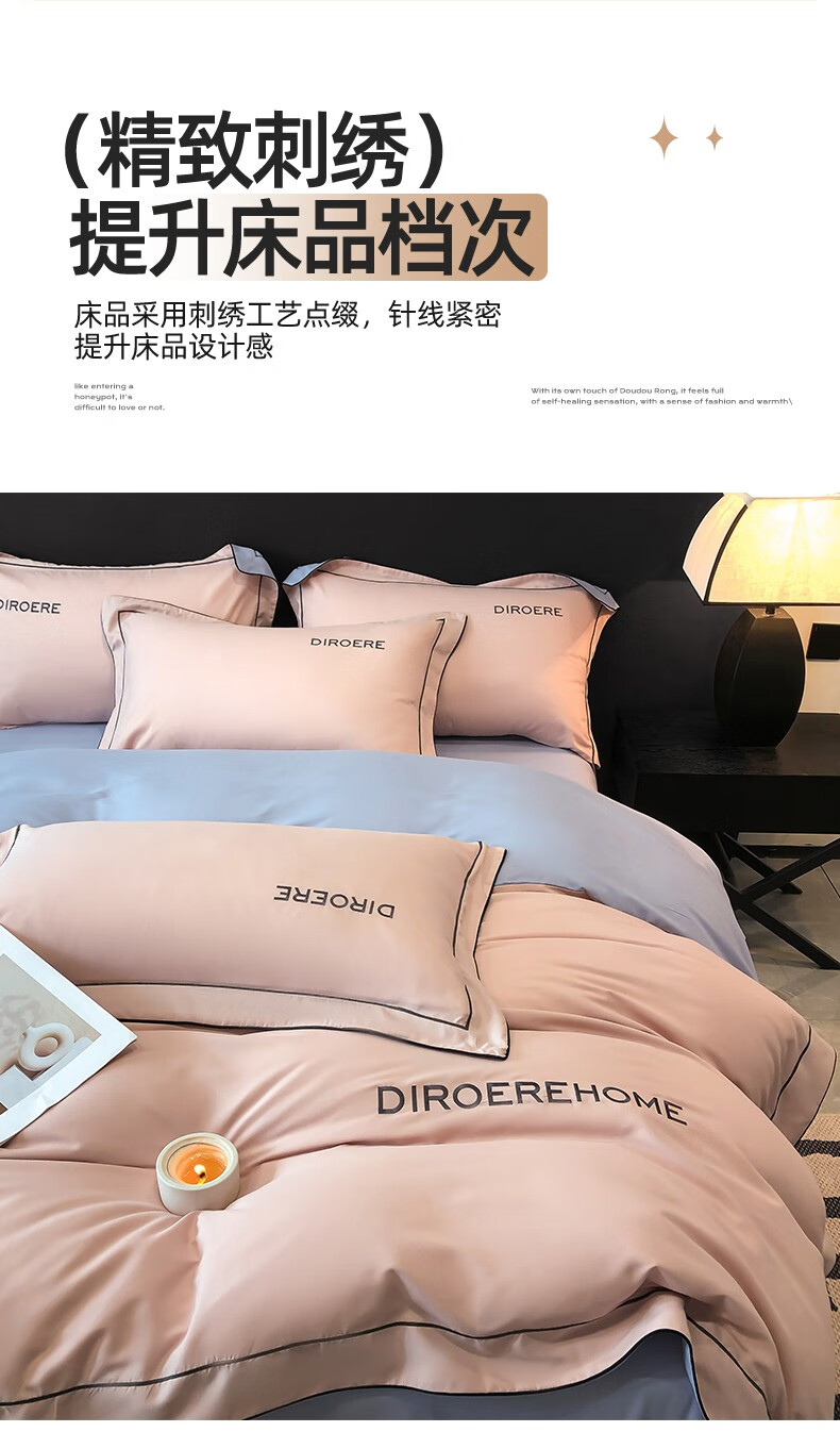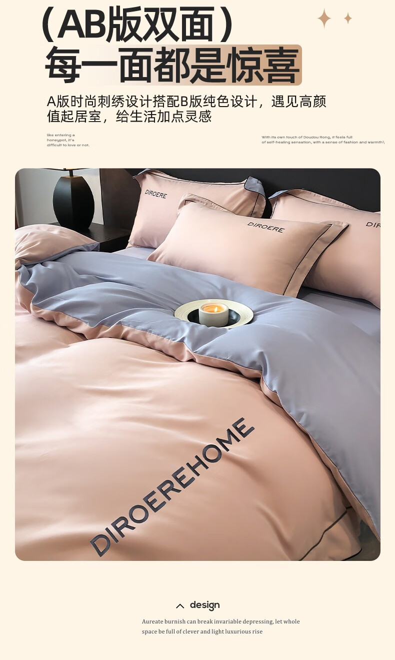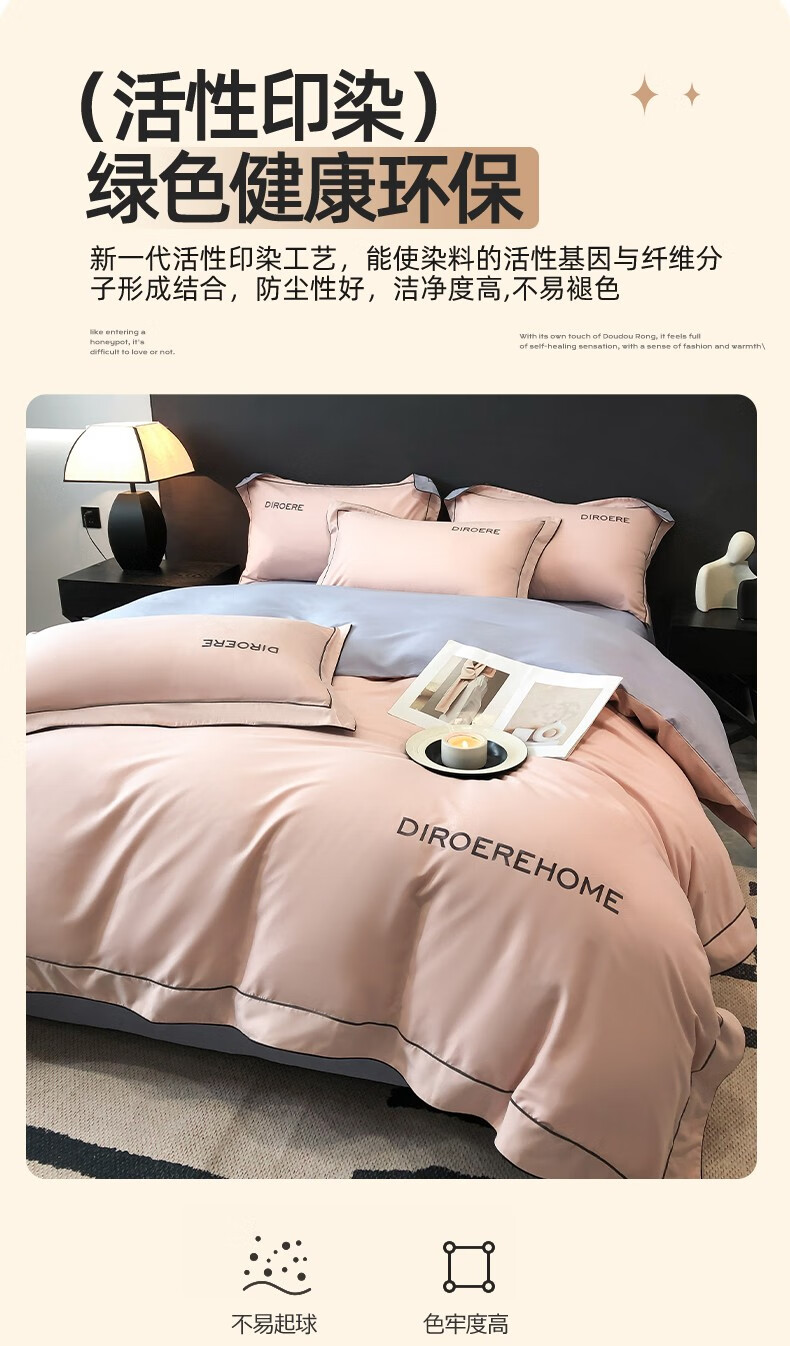 PLOVER 啄木鸟家纺40S长绒棉绣花四件套 香叶粉 200*230cm