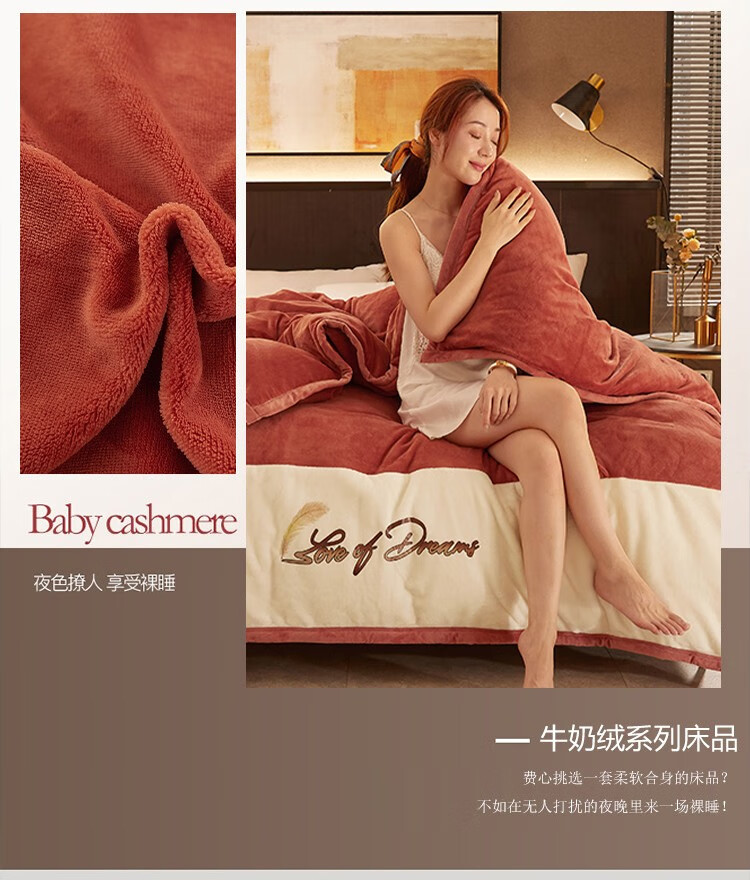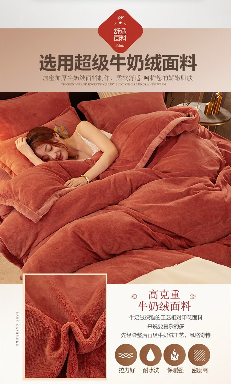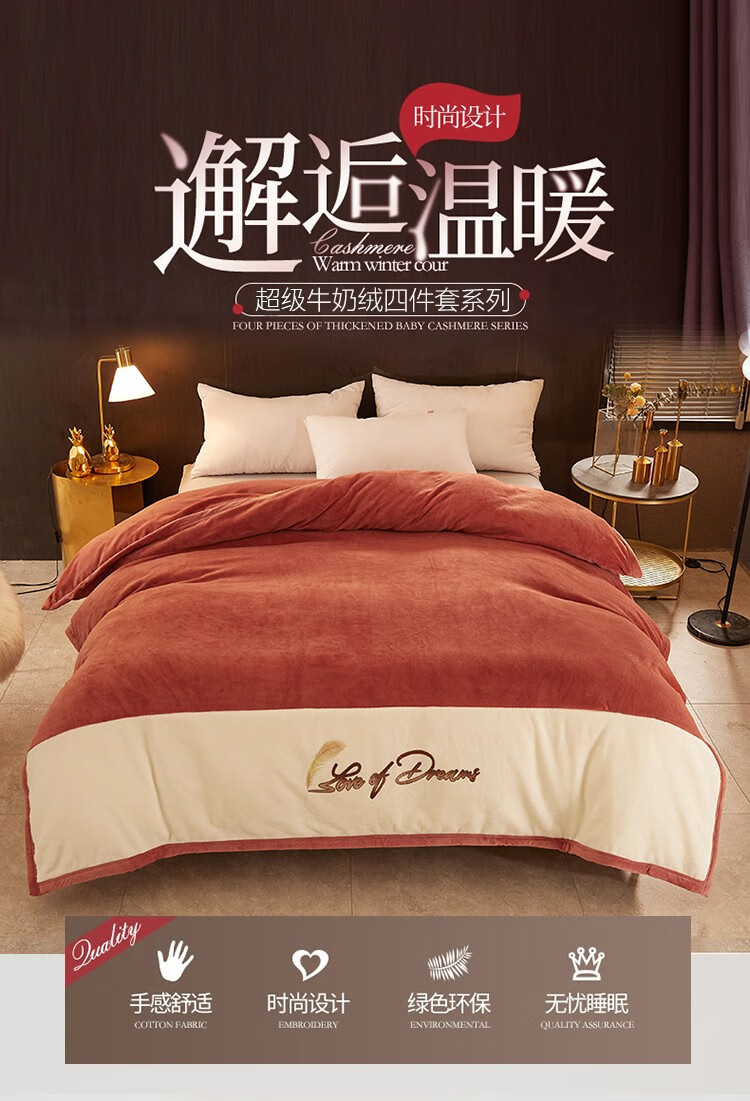 PLOVER 啄木鸟家纺超级牛奶绒四件套 豆沙 200*230