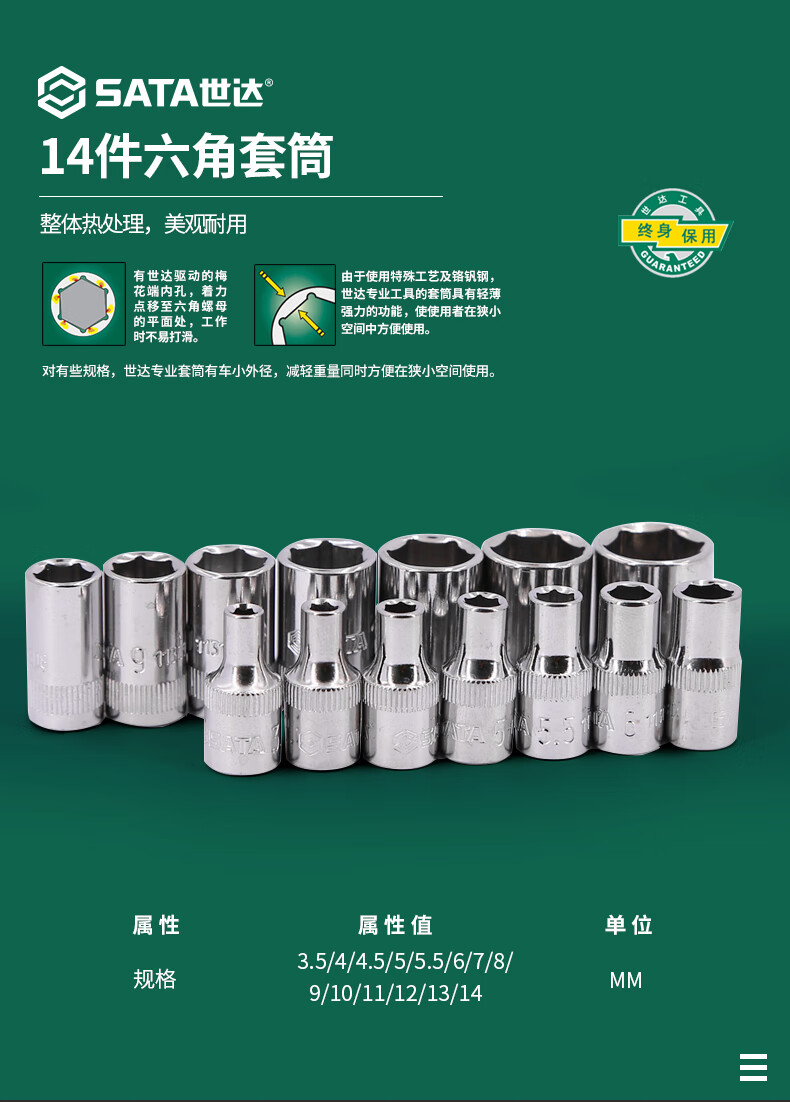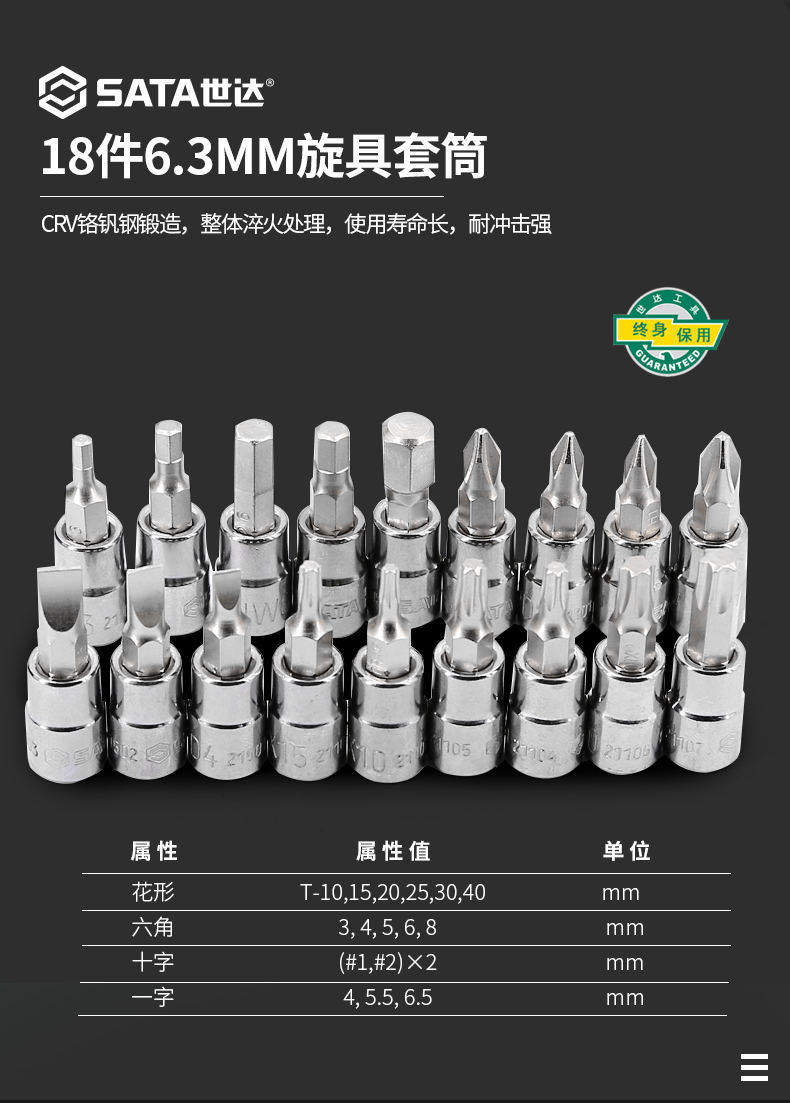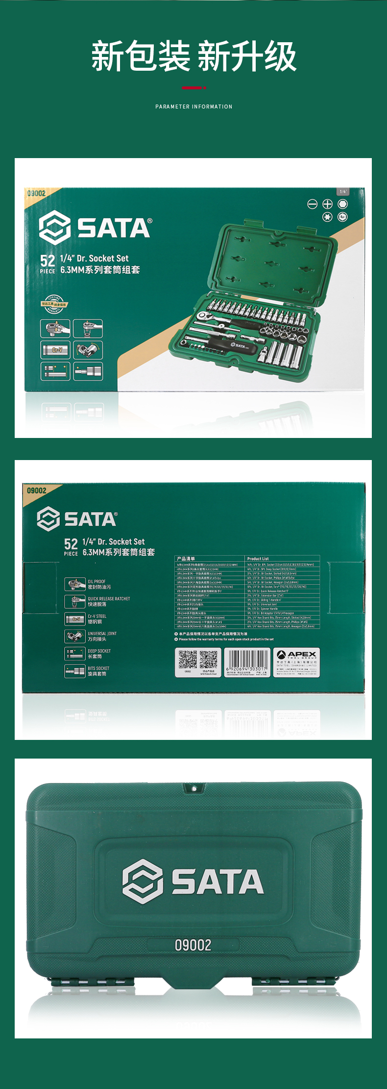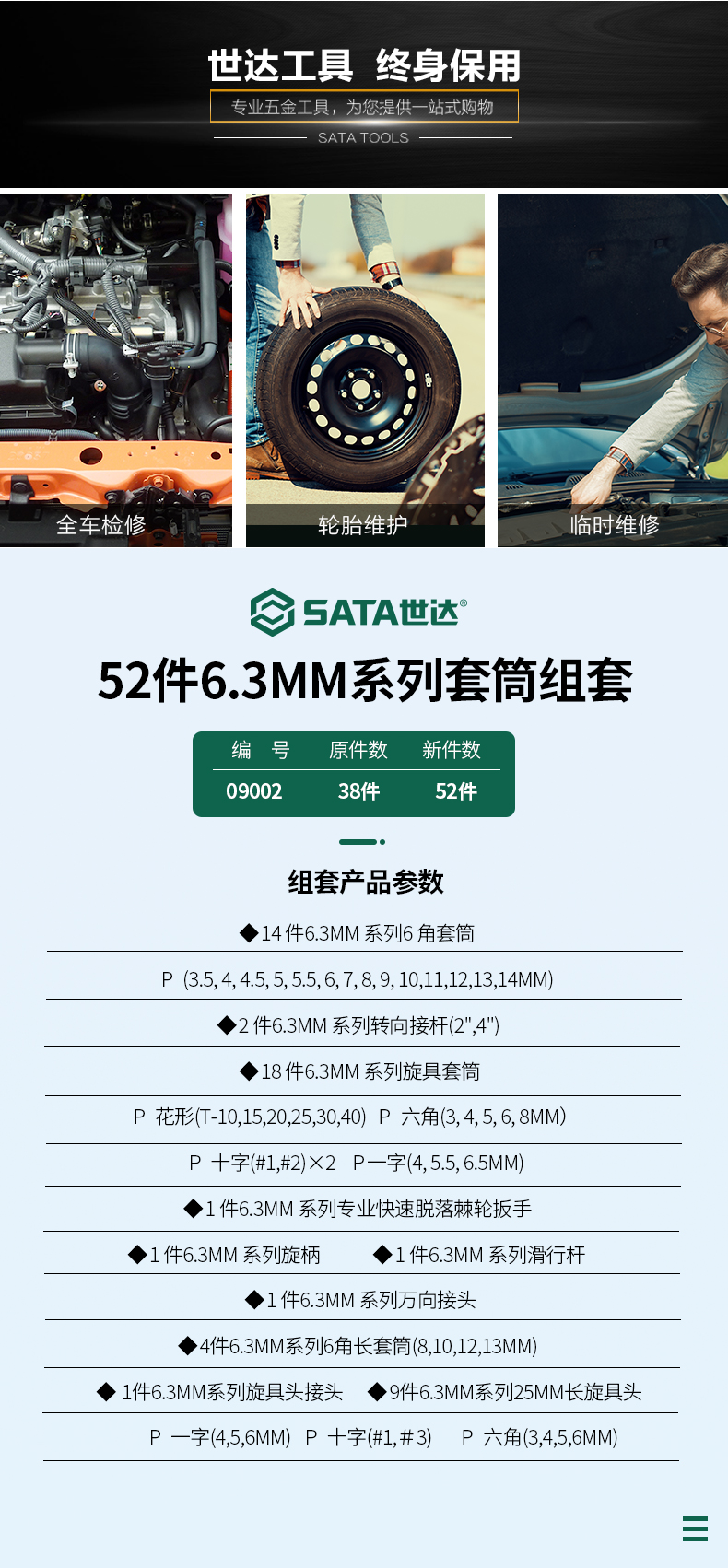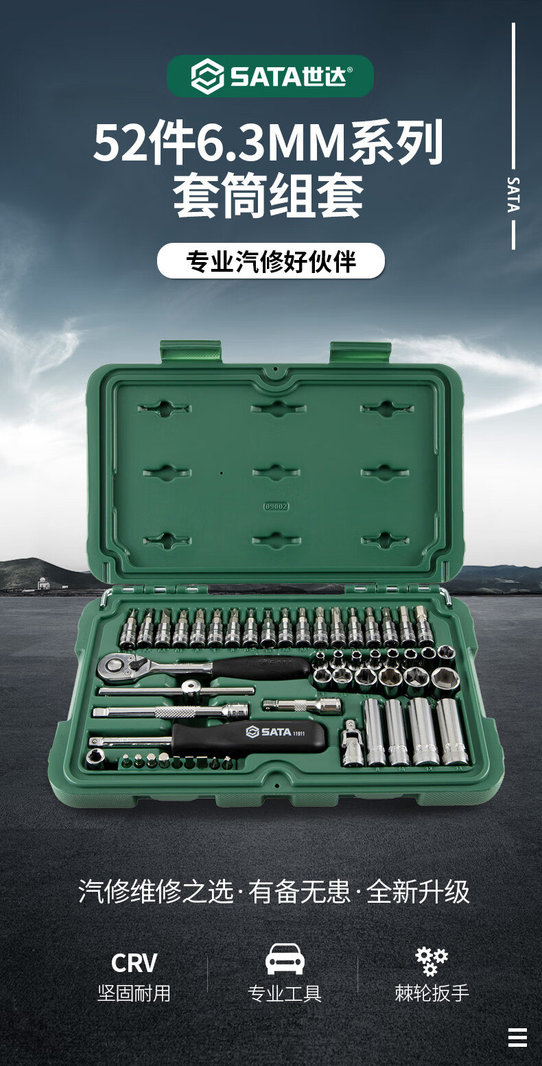 世达(SATA) 52件套6.3mm系列公制组合套装工具 09002 单位:套