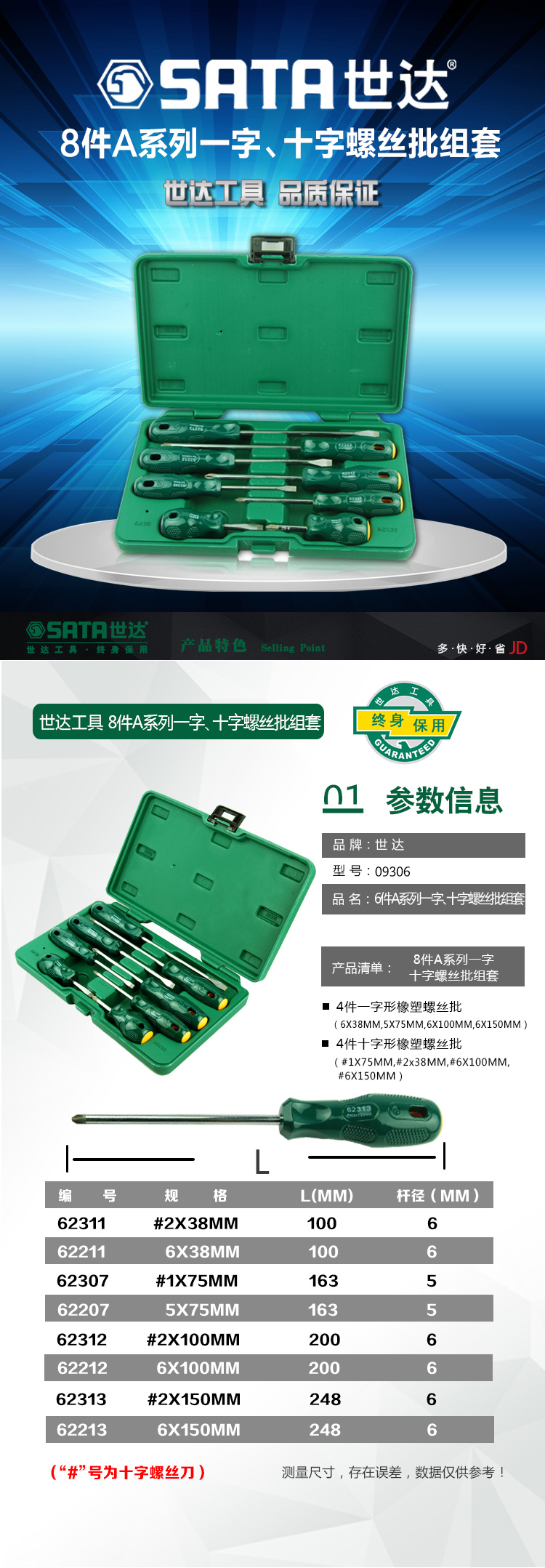 世达(SATA)09306 8件A系列一字十字螺丝刀组套 单位:套