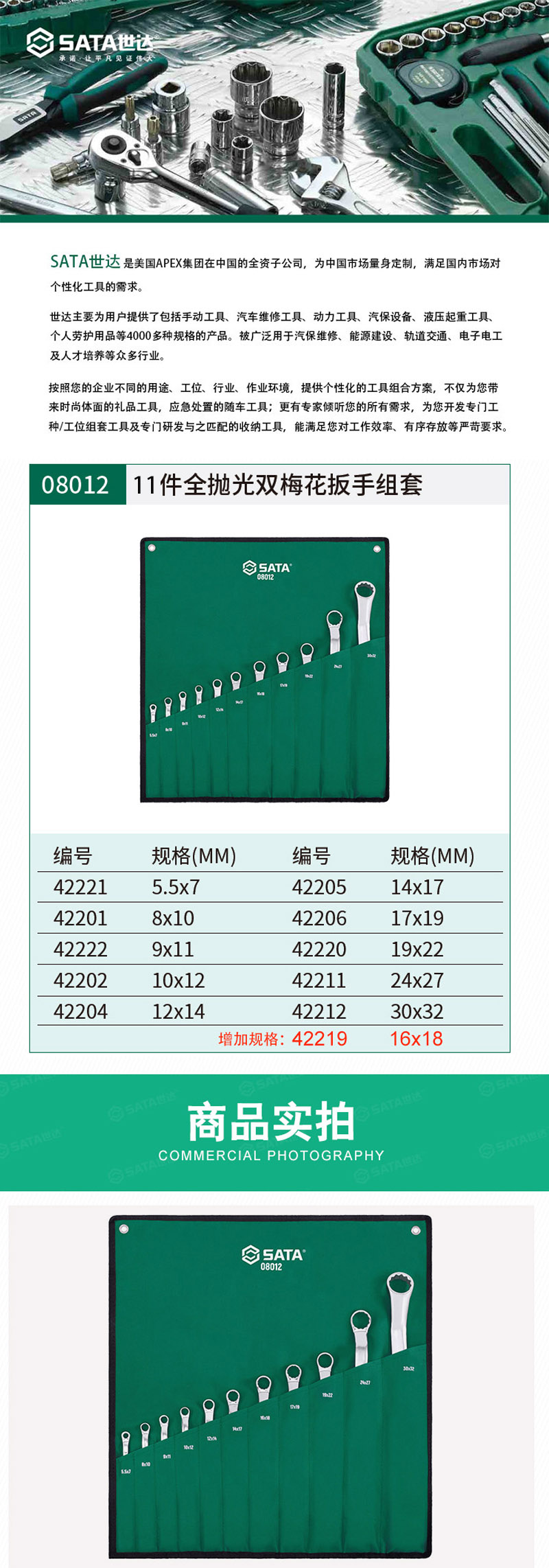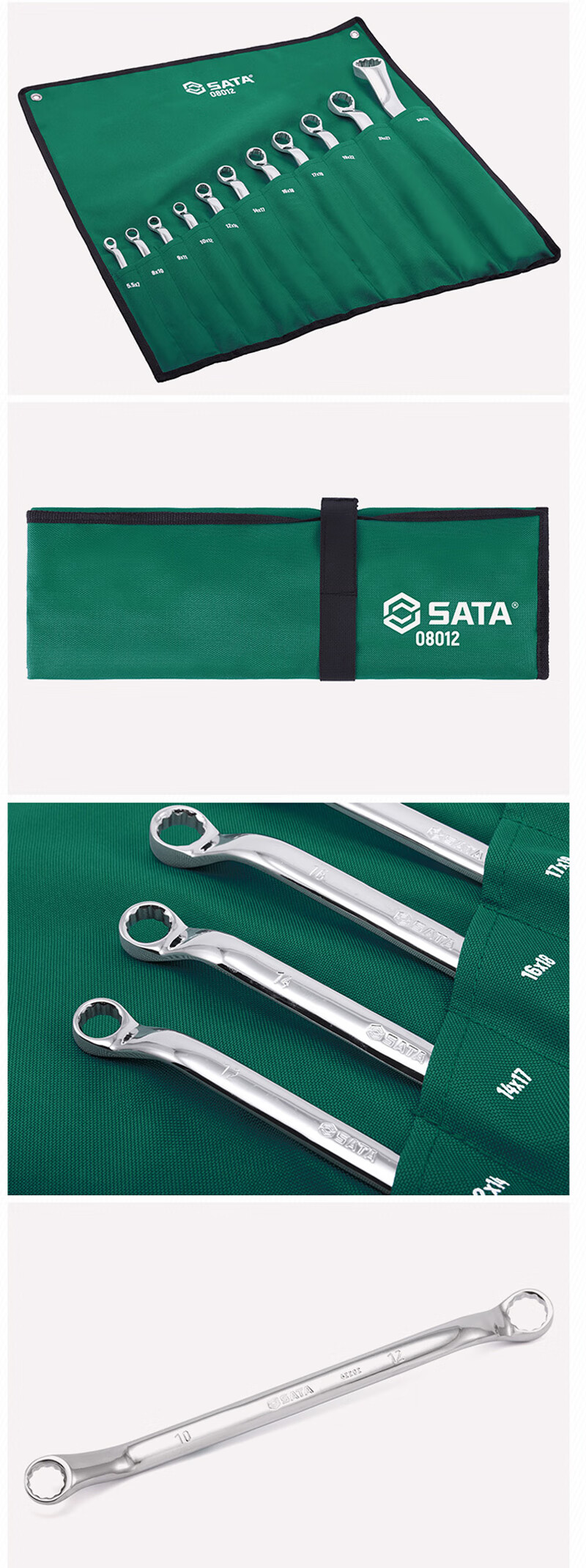 世达(SATA) 11件套全抛光双梅花扳手开口汽修五金工具板子 08012 单位:套
