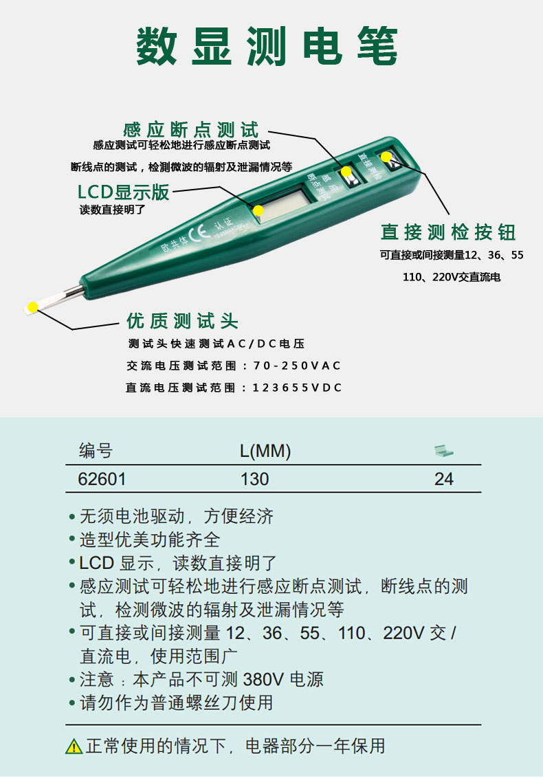 世达 SATA 62601数显测电笔 数字试电笔130mm 单位:支
