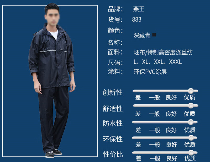 燕王 883 韩版时尚雨衣套装 深藏青 (L-4XL码可选 下单备注)