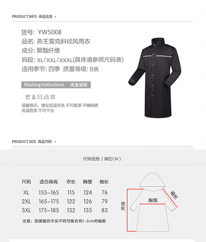 燕王 5008 雪克斜纹双层加厚制服式长款风雨衣 (XL-3XL码可选 下单备注)