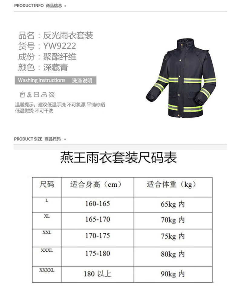 燕王 9222安全防汛男女分体夜光雨衣套装 (L-4XL码可选 下单备注)