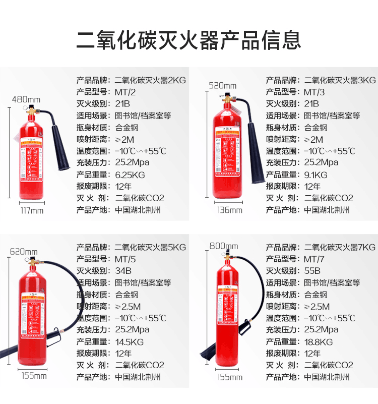 江荆 手提式二氧化碳灭火器3公斤 机房精密仪器灭火器MT/3