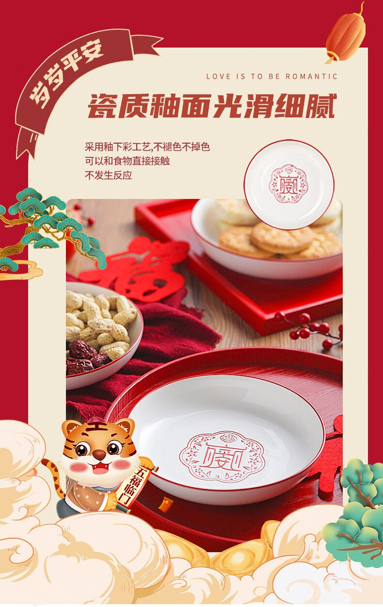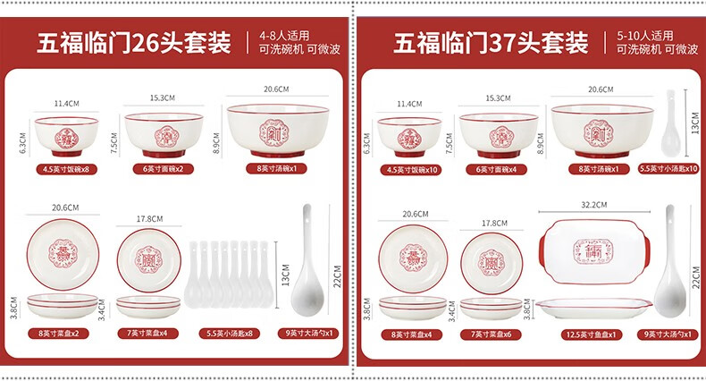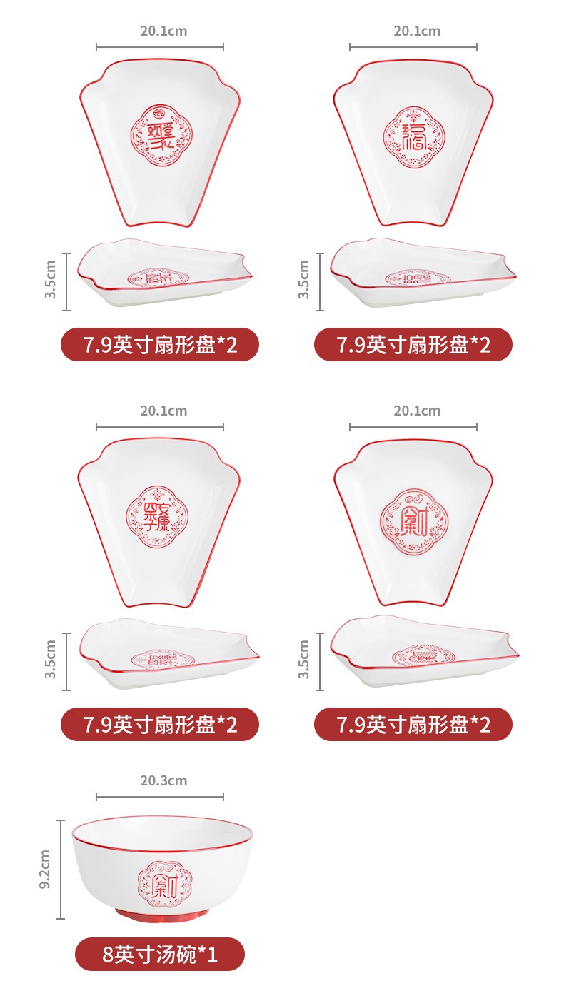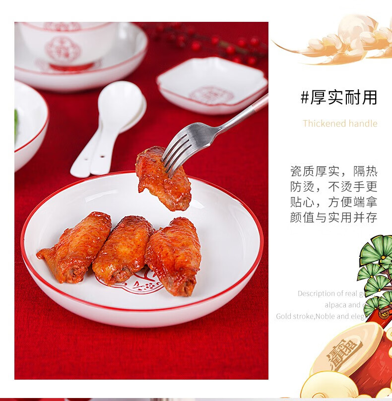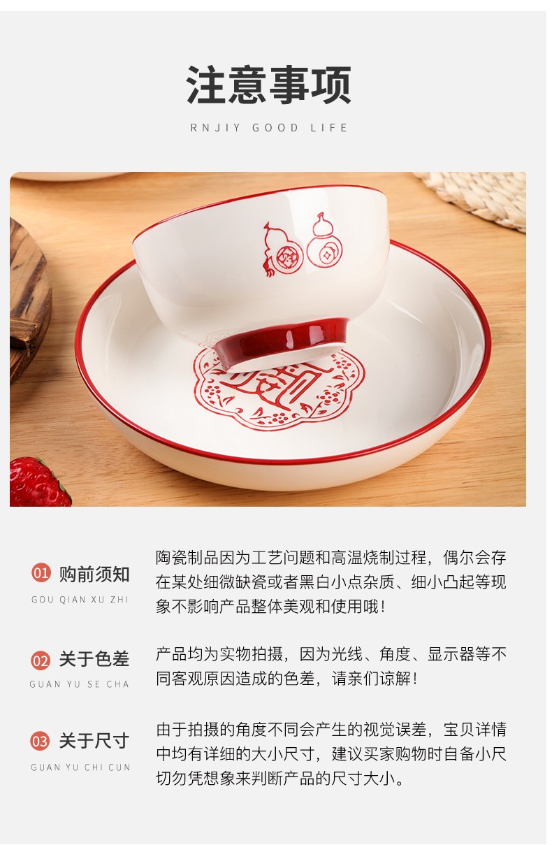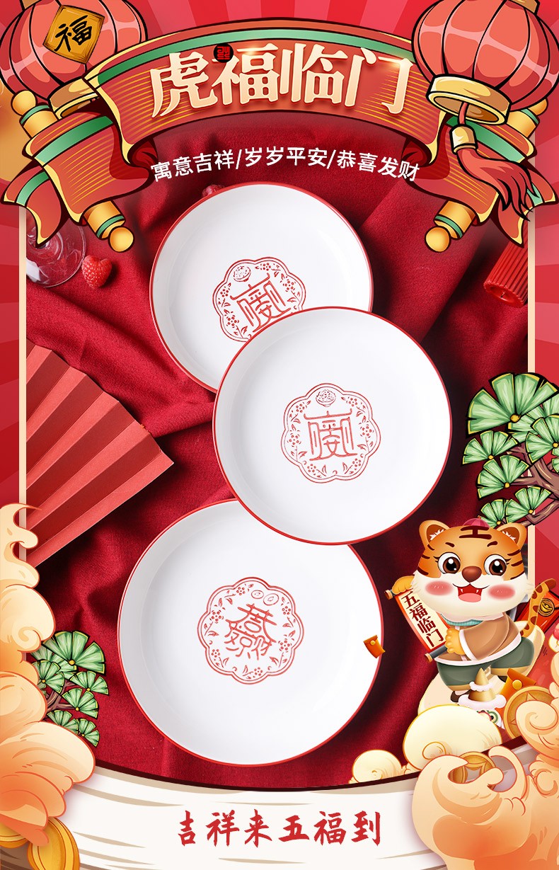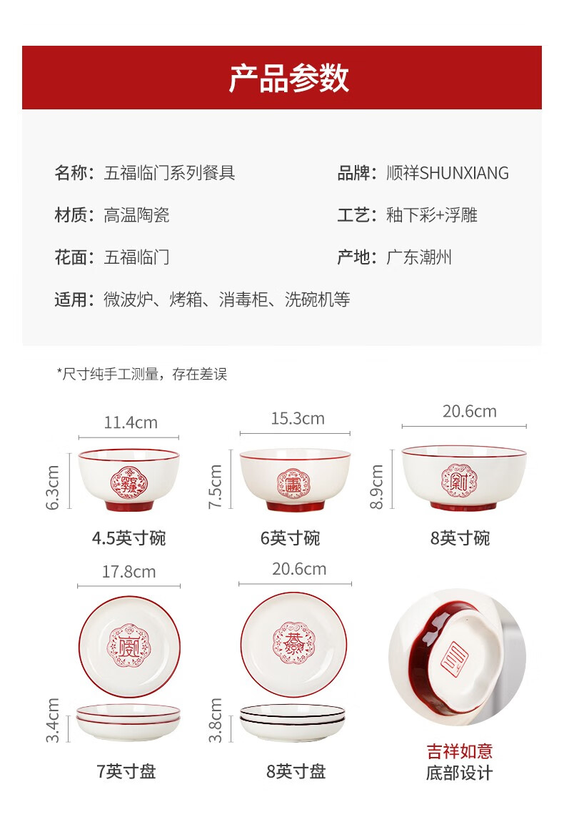 顺祥五福临门餐具套装家用陶瓷碗大面汤碗创意中式釉下彩高温餐具宋韵瓷新年喜庆送礼 12.5英寸五福鱼盘单个【年年有余】单位:个