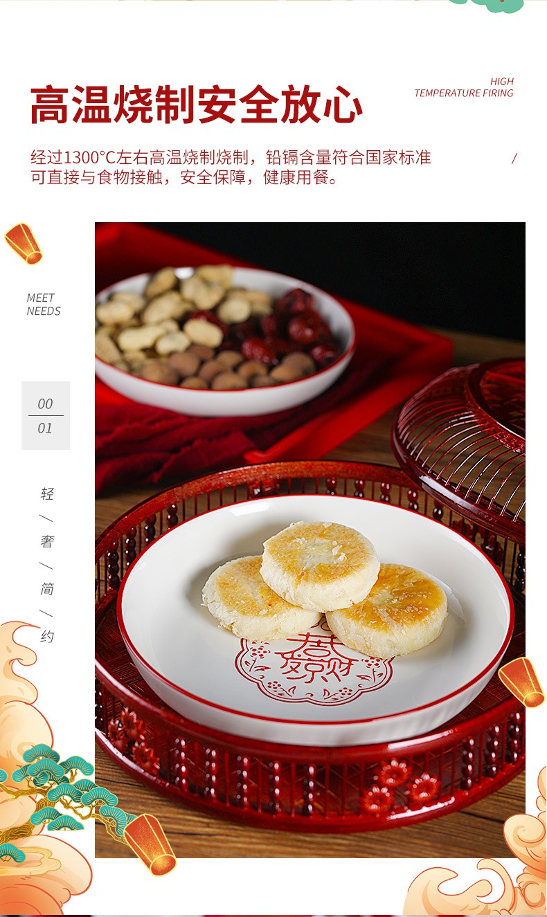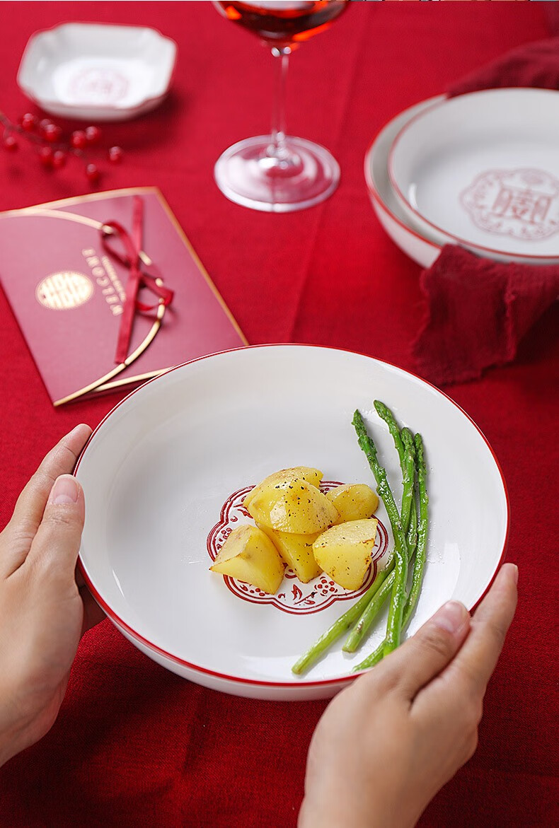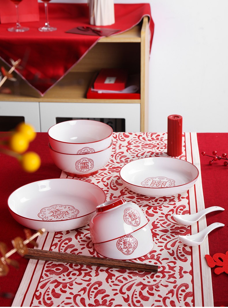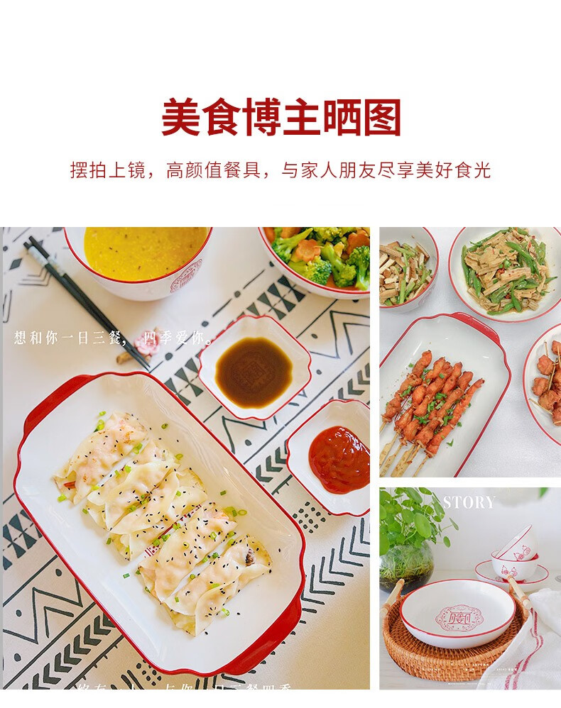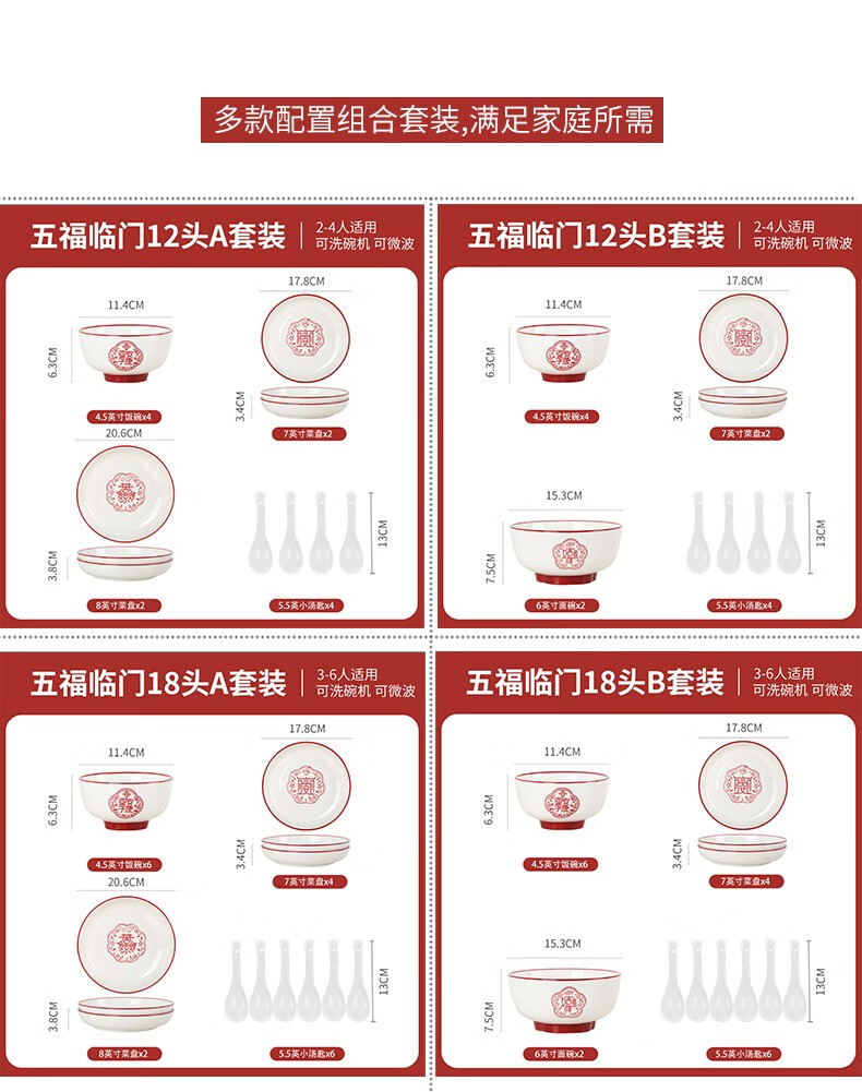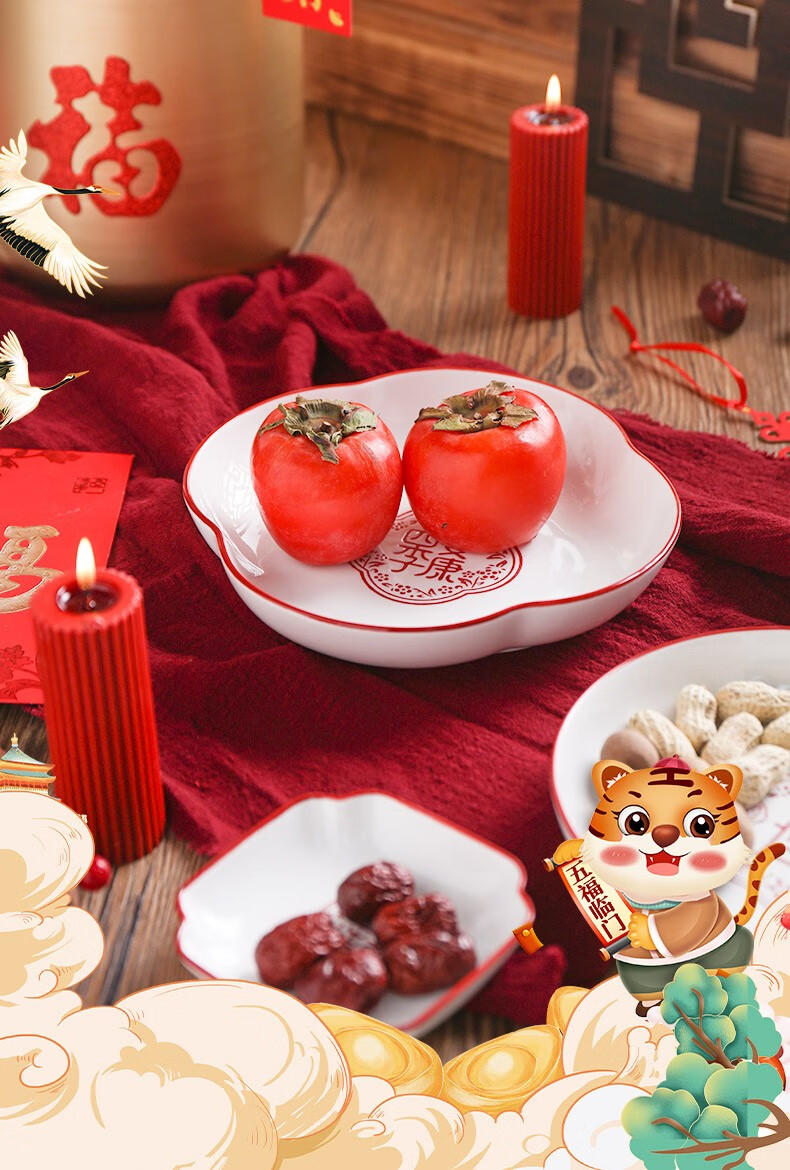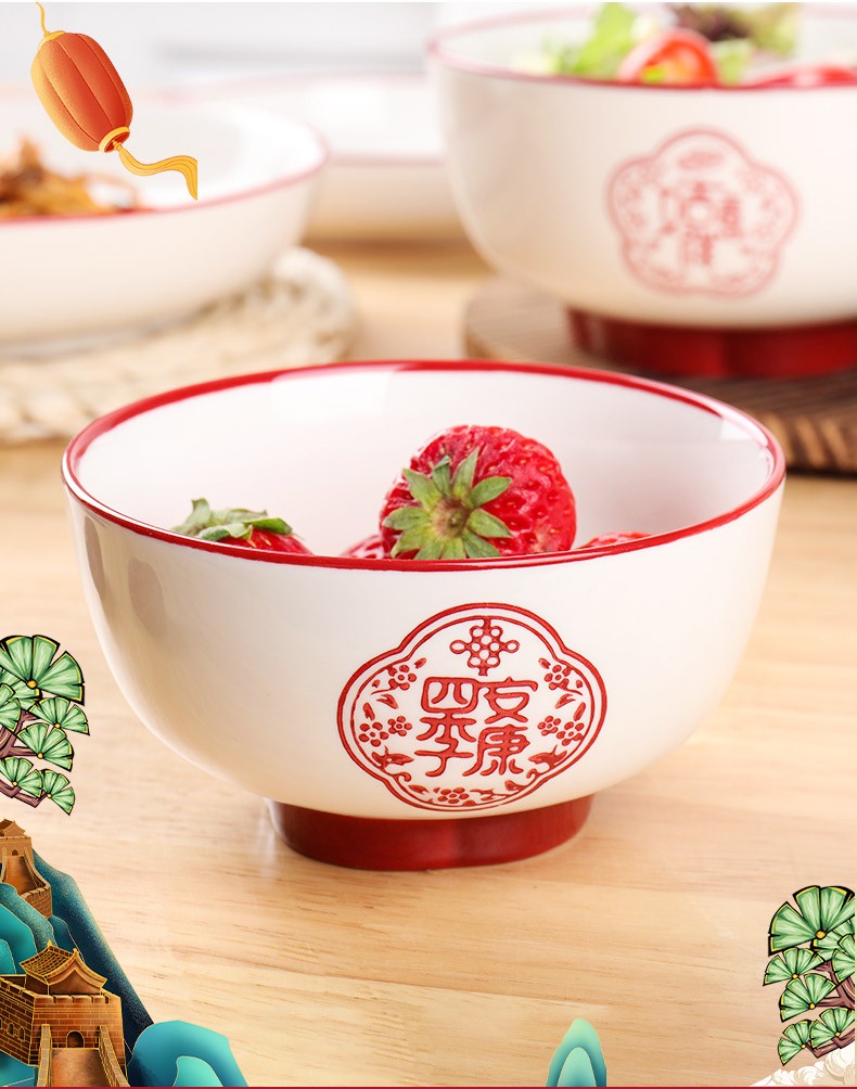 顺祥五福临门餐具套装家用陶瓷碗大面汤碗创意中式釉下彩高温餐具宋韵瓷新年喜庆送礼 12.5英寸五福鱼盘单个【年年有余】单位:个