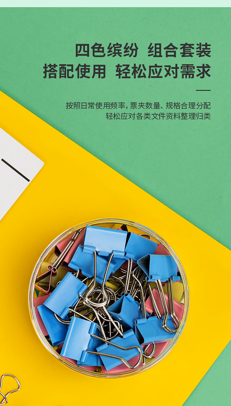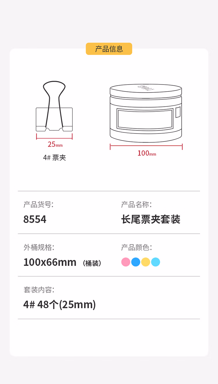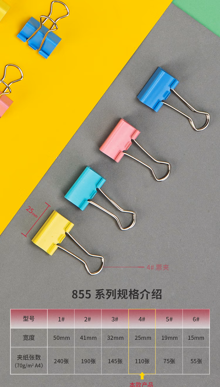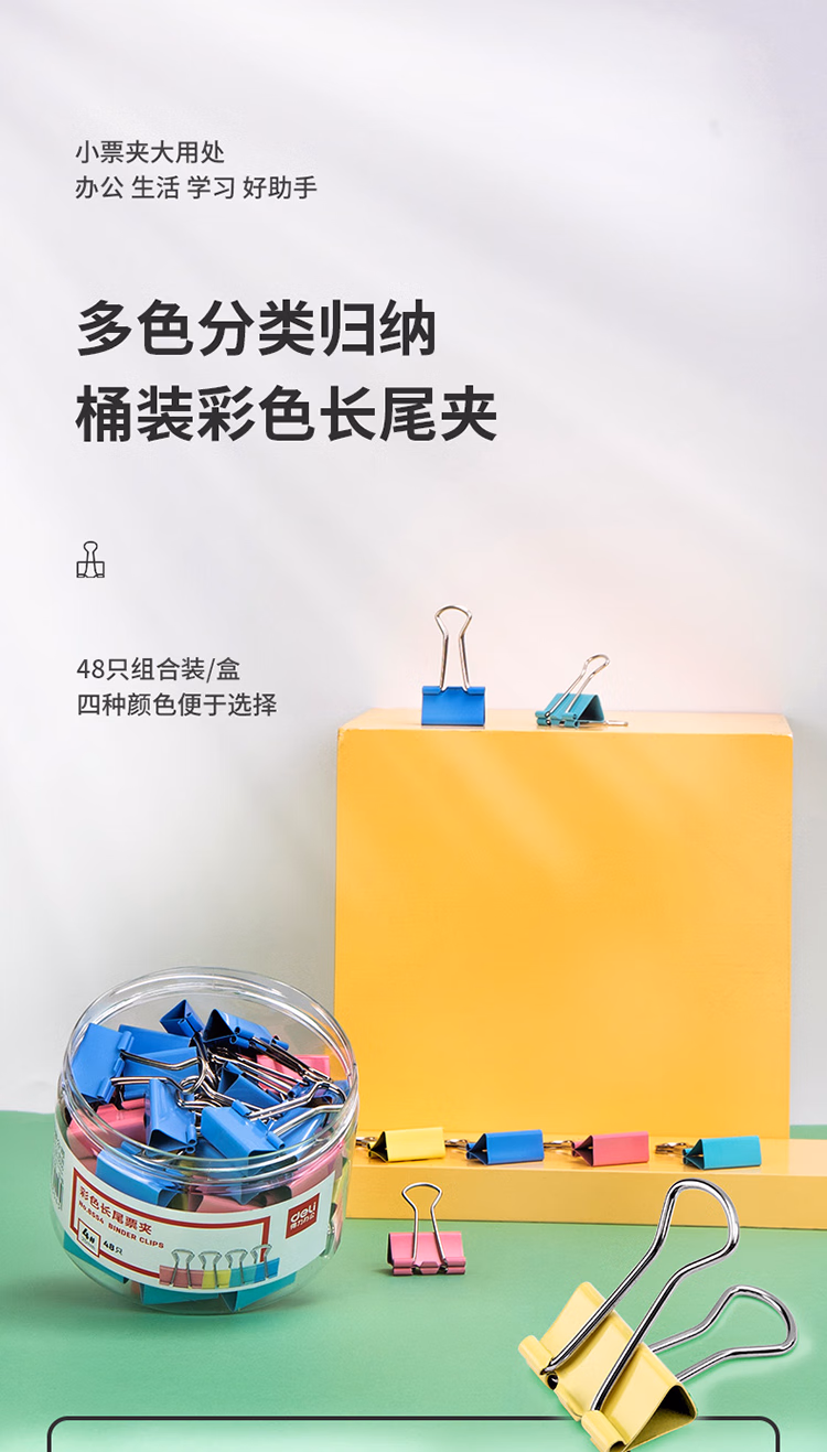 得力 8554 4# 彩色 长尾夹 25mm 筒装(混)(48只/筒)