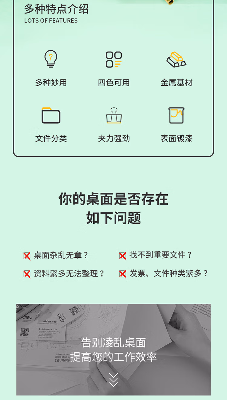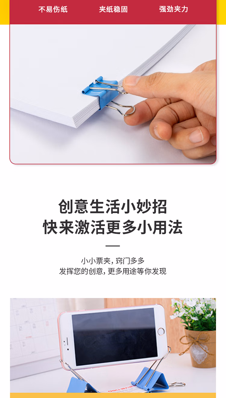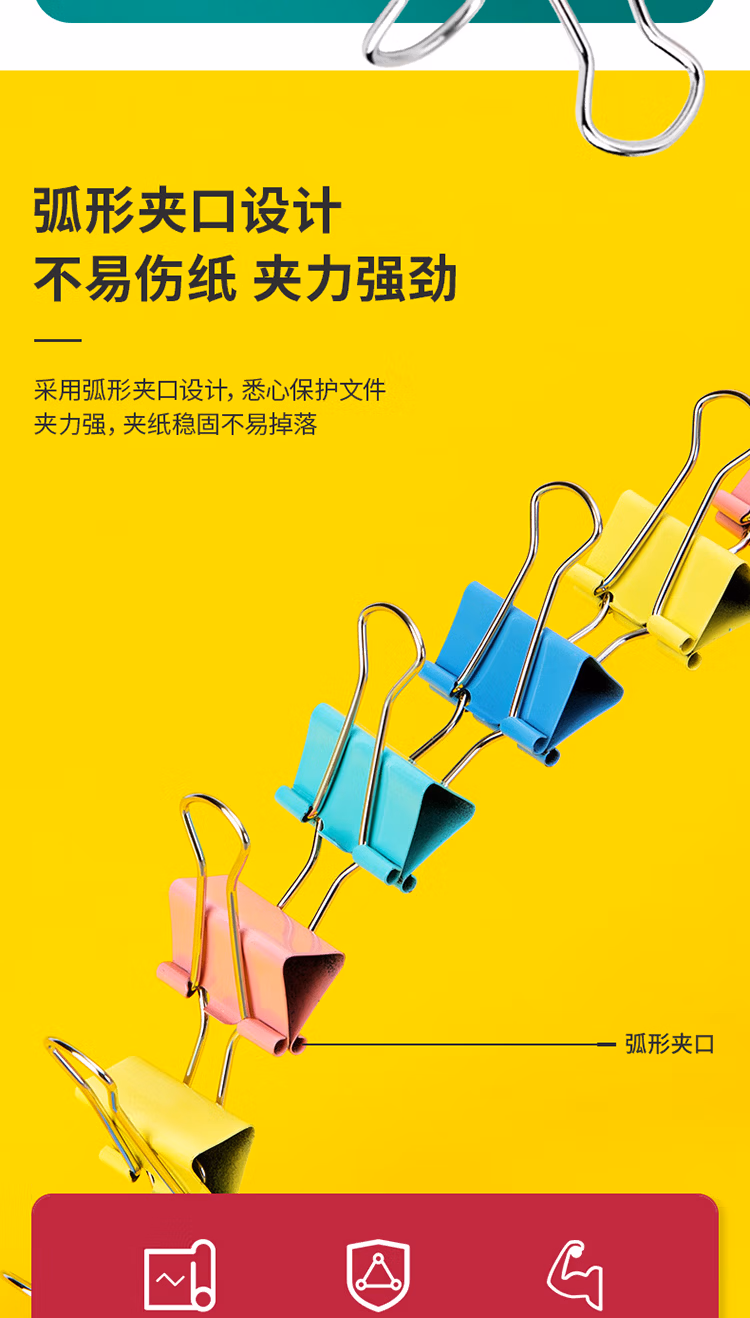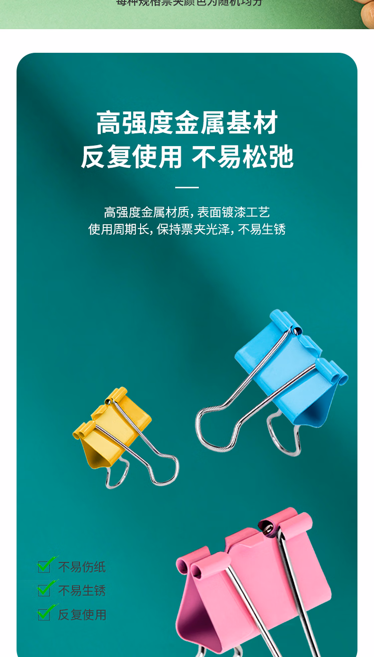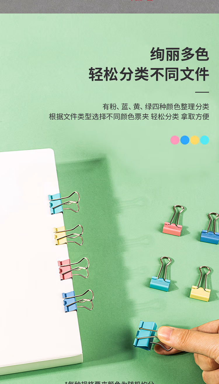 得力 8554 4# 彩色 长尾夹 25mm 筒装(混)(48只/筒)