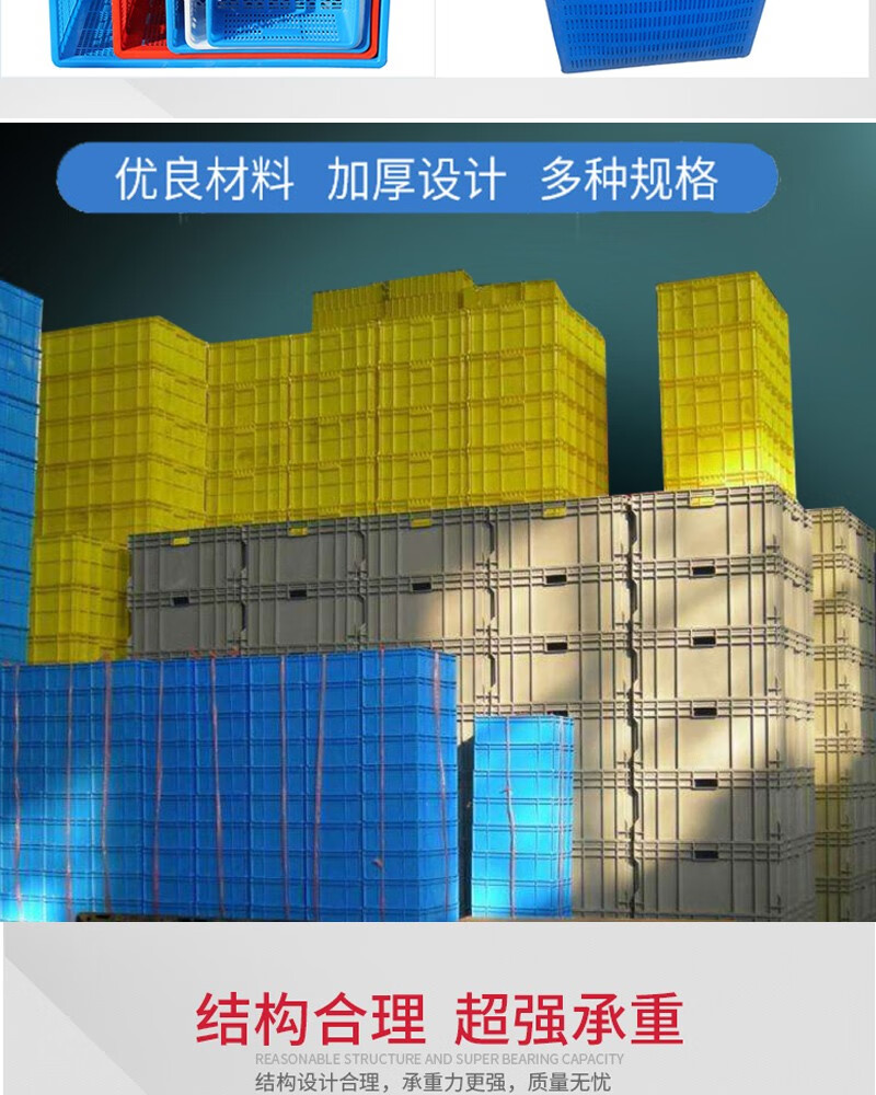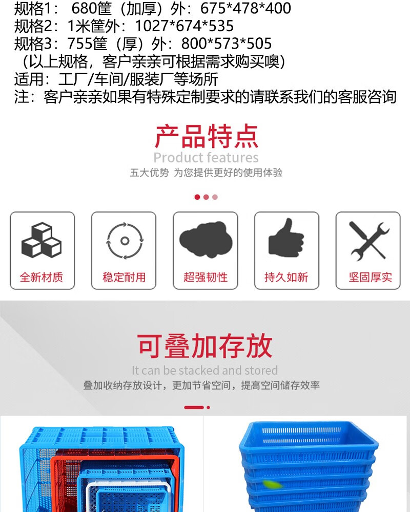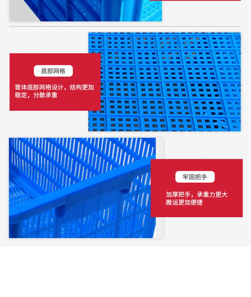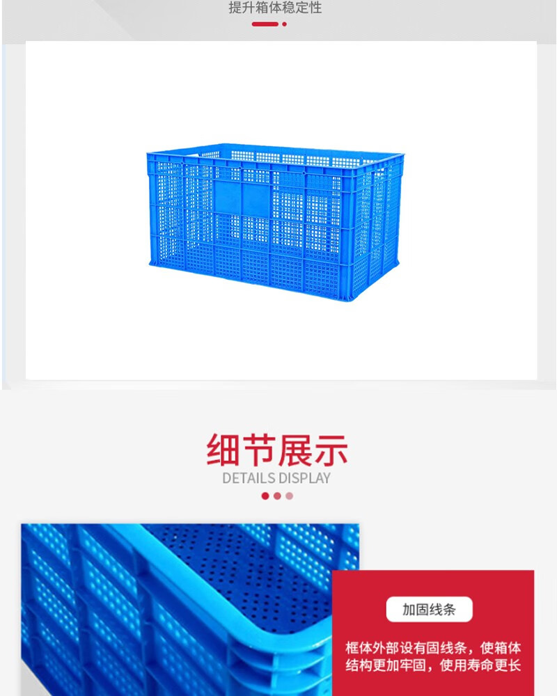 邦耀 周转筐水果筐长方形塑料筐子镂空加厚蓝色框子服装厂工厂运输适用 680筐(加厚)外:675*478*400mm 单位:个